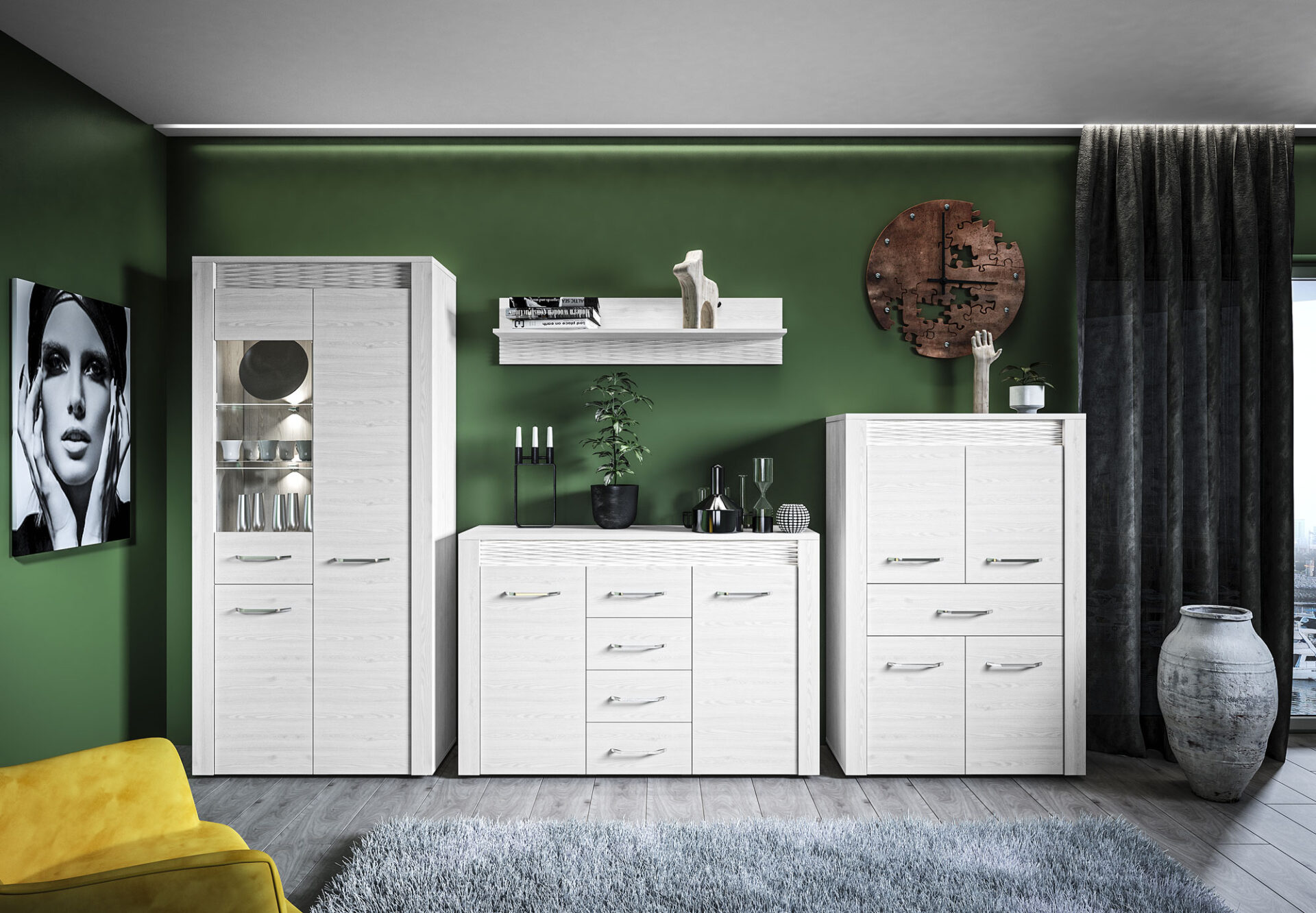 Vitrina CLERMONT 05 suteiks jūsų interjerui gaivumo ir elegancijos.