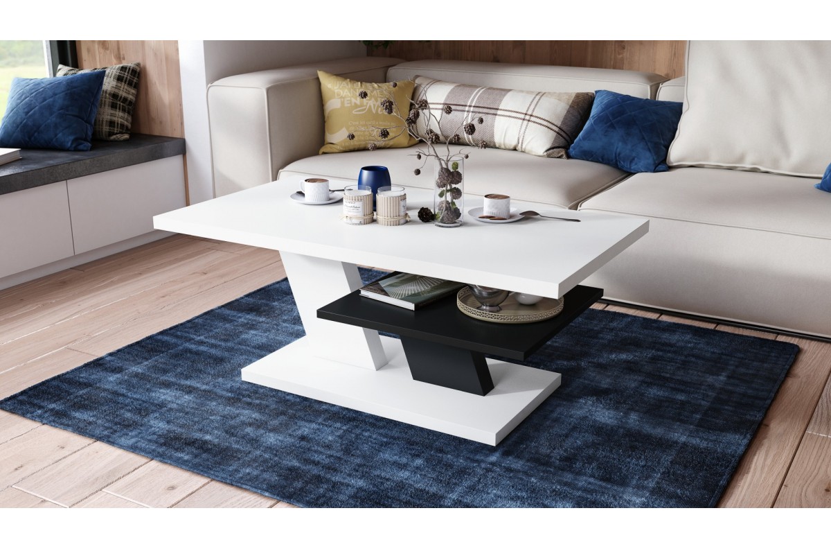 Kavos staliukas pagamintas iš 28 mm storio matinės medžio drožlių plokštės, laminuotos iš abiejų pusių, o lentynos storis – 18 mm. Visas staliukas apdailintas 1 mm storio ABS briaunomis.