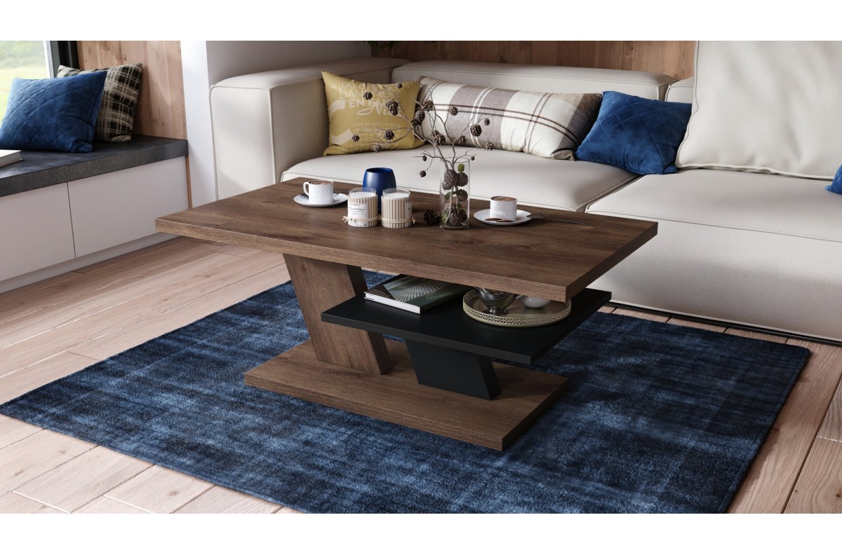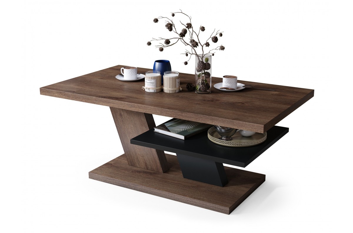 Kavos staliukas pagamintas iš 28 mm storio matinės medžio drožlių plokštės, laminuotos iš abiejų pusių, o lentynos storis – 18 mm. Visas staliukas apdailintas 1 mm storio ABS briaunomis.