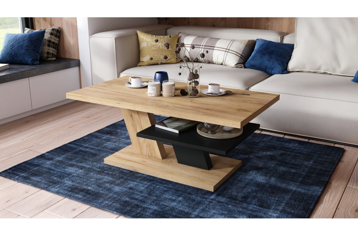 Kavos staliukas pagamintas iš 28 mm storio matinės medžio drožlių plokštės, laminuotos iš abiejų pusių, o lentynos storis – 18 mm. Visas staliukas apdailintas 1 mm storio ABS briaunomis.