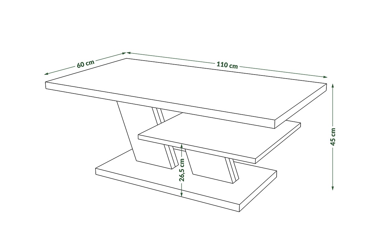 PLOTIS 110 cm, GYLIS 60 cm, AUKŠTIS 45 cm, MEDŽIAGOS Medžio drožlių plokštė, PAVIRŠIUS Matinis, STILIUS Modernus, SVORIS SU PAKUOTE 29,5 kg, KITA Produktas skirtas savarankiškam surinkimui su pateiktomis instrukcijomis