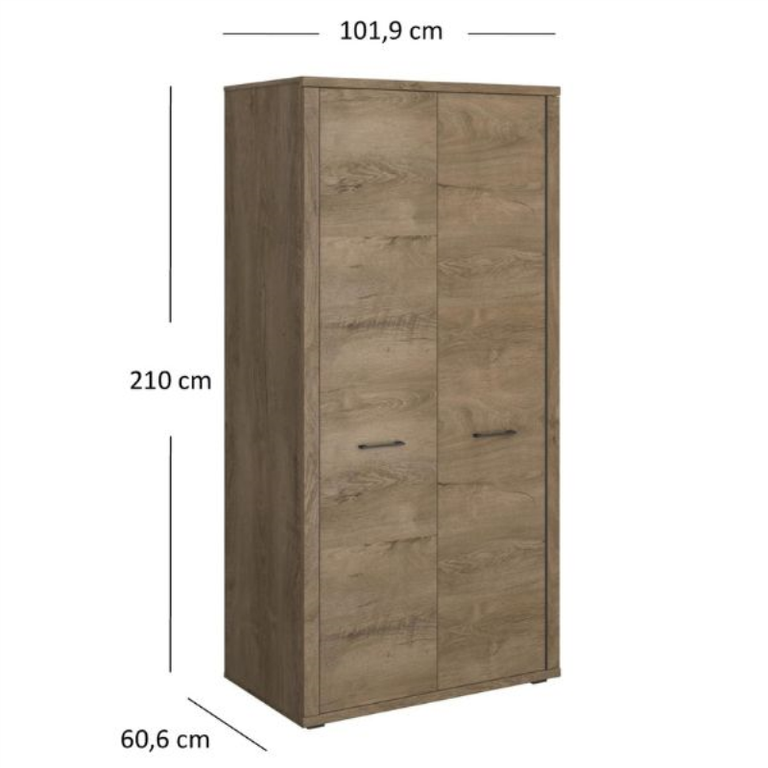 Funkcionalumas ir patraukli išvaizda – tai kompaktiškos dviejų durų CORDAN spintos prioritetai! Šį baldą galima derinti įvairiais būdais, todėl jis puikiai tinka jūsų miegamajam, persirengimo kambariui ar prieškambariui, suteikiant daug vietos daiktams susidėti. Spinta pasižymi patrauklia tamsaus Lefkas ąžuolo apdaila. Juodos rankenėlės suteikia įdomių akcentų. 101,9 x 210 x 60,6 cm (P x A x G) matmenys suteikia daug vietos drabužiams, batams ir aksesuarams. Už dviejų durų yra drabužių kabykla ir lentyna. Ši spinta puikiai tinka mažoms erdvėms. Klasikinė CORDAN baldų kolekcijos išvaizda užtikrina, kad ji tarnaus ilgus metus. CORDAN baldų kolekcija – tai pasirinkimas tiems, kurie vertina natūralų grožį ir harmoningą interjerą. Apdaila šilta, šiek tiek griežta Lefkas ąžuolo spalva suteikia kambariams malonią atmosferą, puikiai atitinkančią naujausias interjero dizaino tendencijas – paprastumą, funkcionalumą ir subtilias detales. Atraskite CORDAN kolekcijos siūlomas galimybes, kurios universalūs baldai puikiai tinka tiek namų erdvėms, tiek stilingoms darbo vietoms.