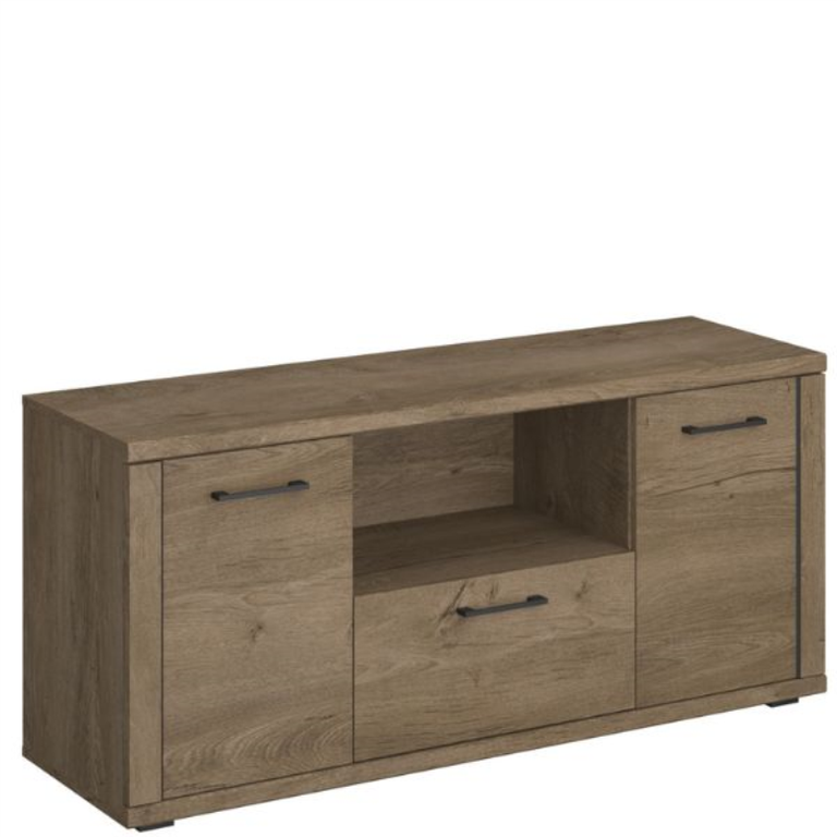CORDAN televizoriaus staliukas, pagamintas iš natūralaus, tamsaus Lefkas ąžuolo apdailos, yra elegantiškas ir praktiškas baldas, puikiai tinkantis moderniai svetainei. Staliuko matmenys yra maždaug 130 x 61,6 x 41 cm (P x A x G) ir jame yra daug vietos multimedijos įrangai bei įvairiems priedams laikyti. Už dviejų durelių ir stalčiuje rasite viską, ko jums reikia, lengvai pasiekiamoje vietoje. Ant viršaus galite padėti ir televizorių, ir įvairius dekoratyvinius daiktus. CORDAN televizoriaus staliukas yra efektyvus sprendimas norint sukurti patraukliai suprojektuotą erdvę. Klasikinė CORDAN baldų kolekcijos išvaizda užtikrina, kad ji tarnaus ilgus metus. CORDAN baldų kolekcija yra pasirinkimas tiems, kurie vertina natūralų grožį ir harmoningą interjerą. Apdaila šilta, šiek tiek griežta Lefkas ąžuolo spalva suteikia patalpoms malonią atmosferą, puikiai atitinkančią naujausias interjero dizaino tendencijas – paprastumą, funkcionalumą ir subtilias detales. Atraskite CORDAN kolekcijos siūlomas galimybes, kurios universalūs baldai puikiai tinka tiek namams, tiek stilingoms darbo vietoms.