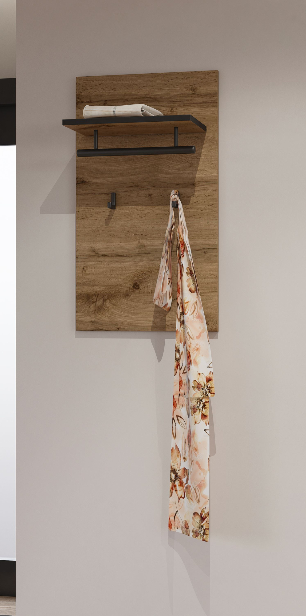 „Cross Hall“ – „Wotan“ ąžuolo spalvos pakabos panelė, matinė juoda