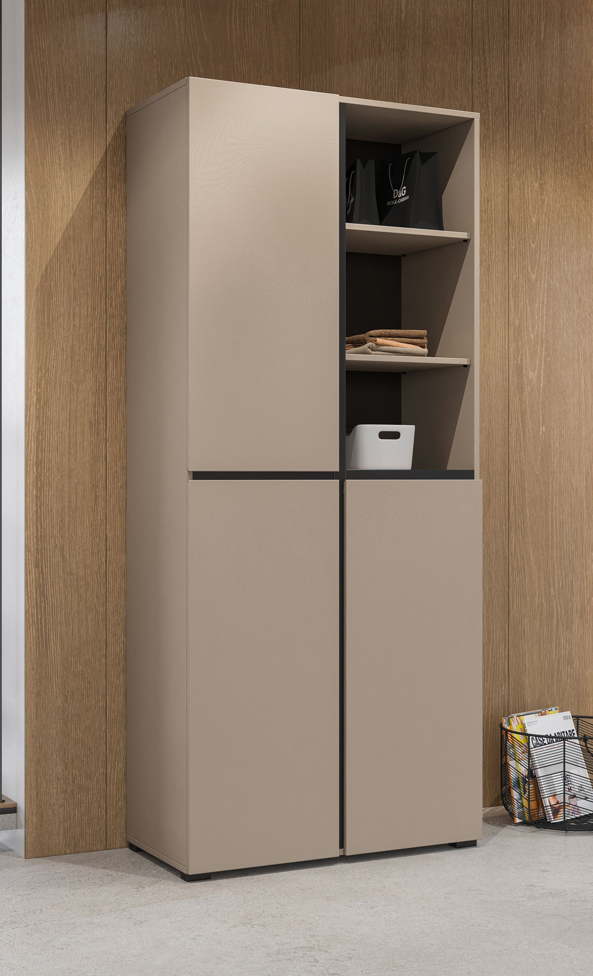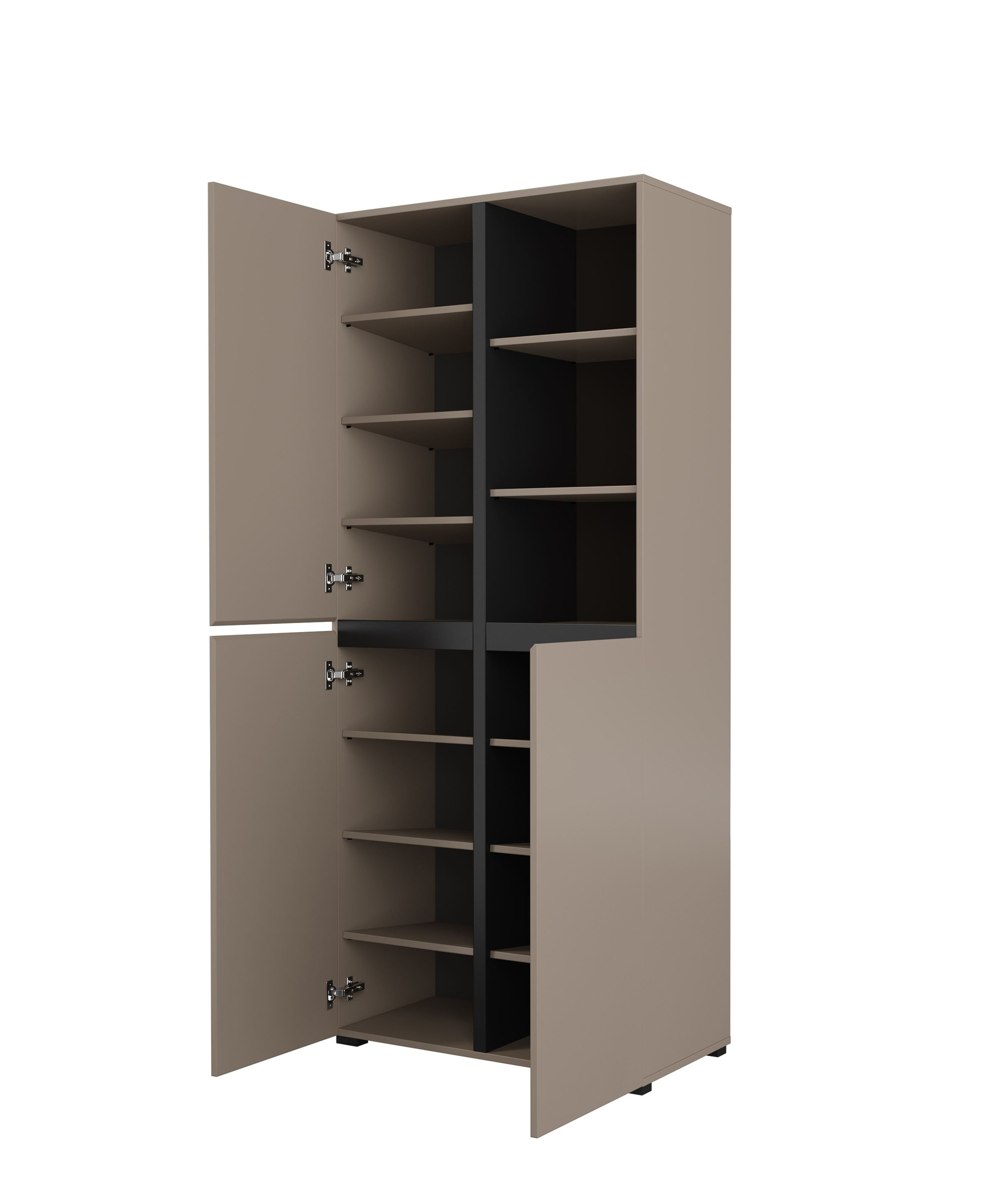Sukurkite unikalią atmosferą savo interjere su elegantiška matinės juodos spalvos trijų durų batų spinta „Cross Hall Congo“. Jos modernus dizainas puikiai derės prie bet kokio interjero, suteikdamas ne tik stiliaus, bet ir klasės. Nebuvo pamiršta nė viena detalė, todėl šis baldas taps tikru bet kurio kambario traukos centru. Aukštos kokybės spintos meistriškumas suteikia tvirtumo ir ilgaamžiškumo pojūtį. Pagaminta iš laminuotos plokštės, ši spinta derina estetiką ir funkcionalumą. Minimalistinis dizainas leidžia lengvai papildyti įvairius interjero stilius – nuo skandinaviško iki industrinio. Sodri juoda spalva suteikia jai elegantišką akcentą, todėl ji iš pirmo žvilgsnio patraukia akį. „Cross Hall“ spinta buvo sukurta atsižvelgiant į maksimalų patogumą ir praktiškumą. Trys erdvios durys leidžia lengvai pasiekti daiktų laikymo skyrius, o apgalvota organizacija užtikrins jūsų daiktų tvarką. Viduje esančios lentynos yra šiek tiek pasvirusios, kad geriau tilptų jūsų batai. Ji puikiai tiks koridoriuje, miegamajame ar net svetainėje, nes suteiks vietos drabužiams, batams ir kitiems smulkiems daiktams, kuriuos norite visada turėti po ranka.