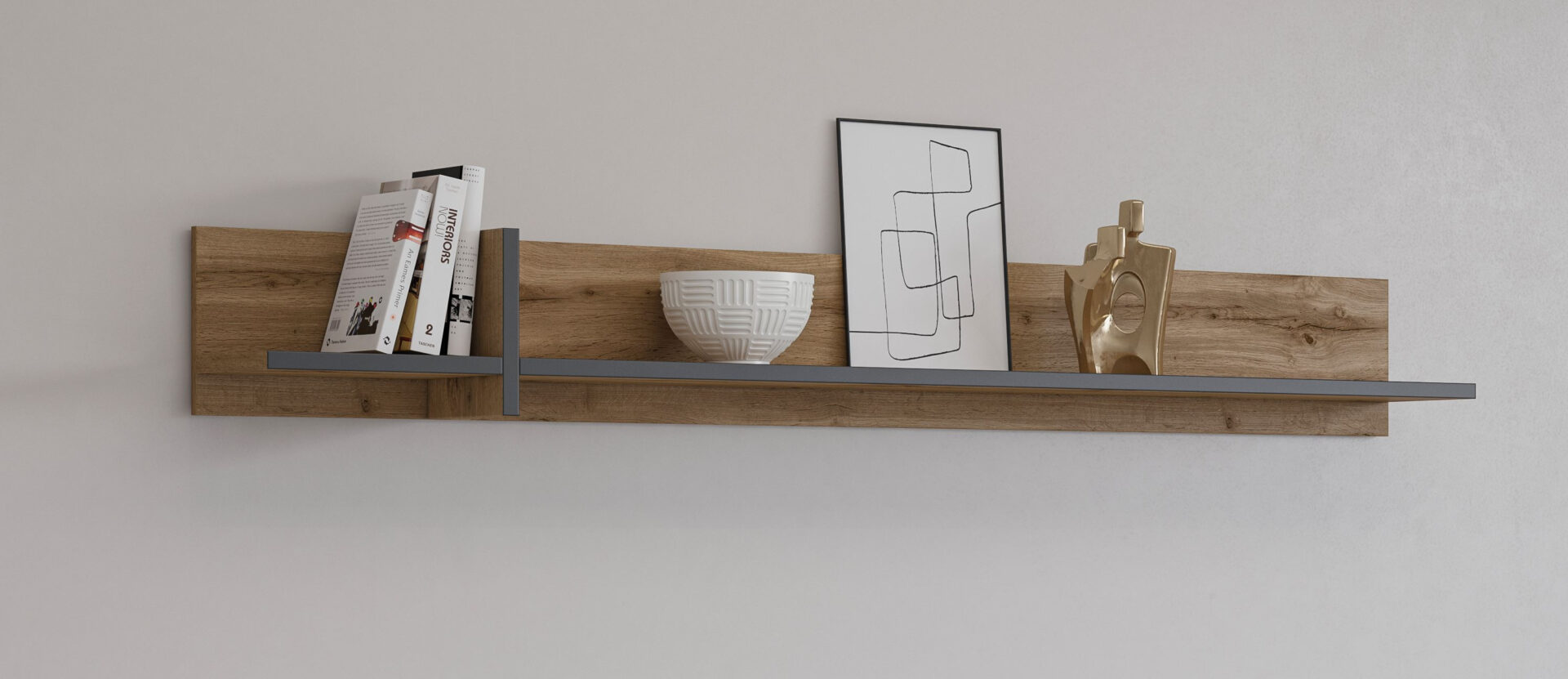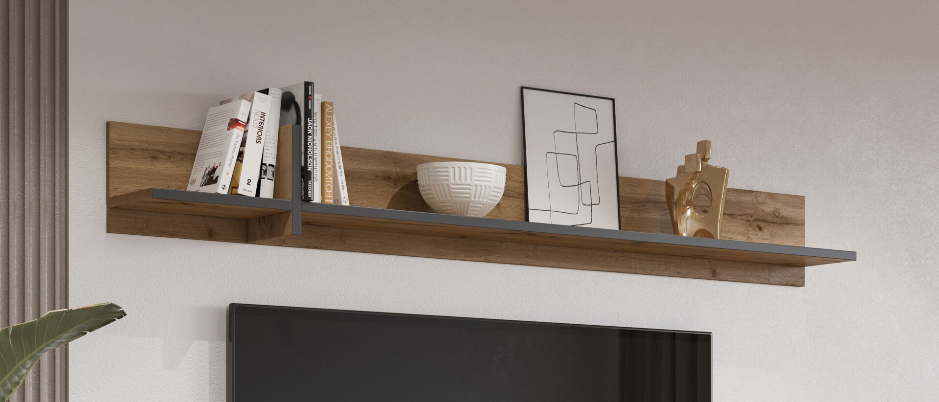 Atraskite pakabinamą lentyną „Cross“ iš „Wotan Oak“ su matinės juodos spalvos akcentu, kuri suteiks jūsų interjerui modernumo. Minimalistinis dizainas puikiai tinka įvairiems stiliams – nuo industrinio iki skandinaviško. Natūralių medienos atspalvių ir elegantiškos matinės juodos spalvos apdailos derinys suteikia lentynai ne tik funkcionalų baldą, bet ir įspūdingą sienos puošmeną. Ši erdvi 180 cm pločio lentyna suteikia galimybę sukurti unikalią kompoziciją. Ant jos galite laikyti mėgstamas knygas, vazoninius augalus ar dekoratyvinius aksesuarus, suteikdami jiems asmeninio akcento. 23 cm gylio lentyna yra pakankamai erdvi, kad joje tilptų didesni daiktai, tačiau pakankamai plona, kad neužgožtų erdvės. Pagaminta iš aukštos kokybės laminuotos plokštės, lentyna yra ne tik estetiškai patraukli, bet ir patvari bei lengvai prižiūrima. Jos medžiaga atspari įbrėžimams ir drėgmei, todėl ji tarnaus ilgai. Be to, paprastas surinkimas reiškia, kad galėsite akimirksniu mėgautis nauju savo namų papildymu. Ji tikrai taps vieta, kuri pritrauks jūsų svečių dėmesį.