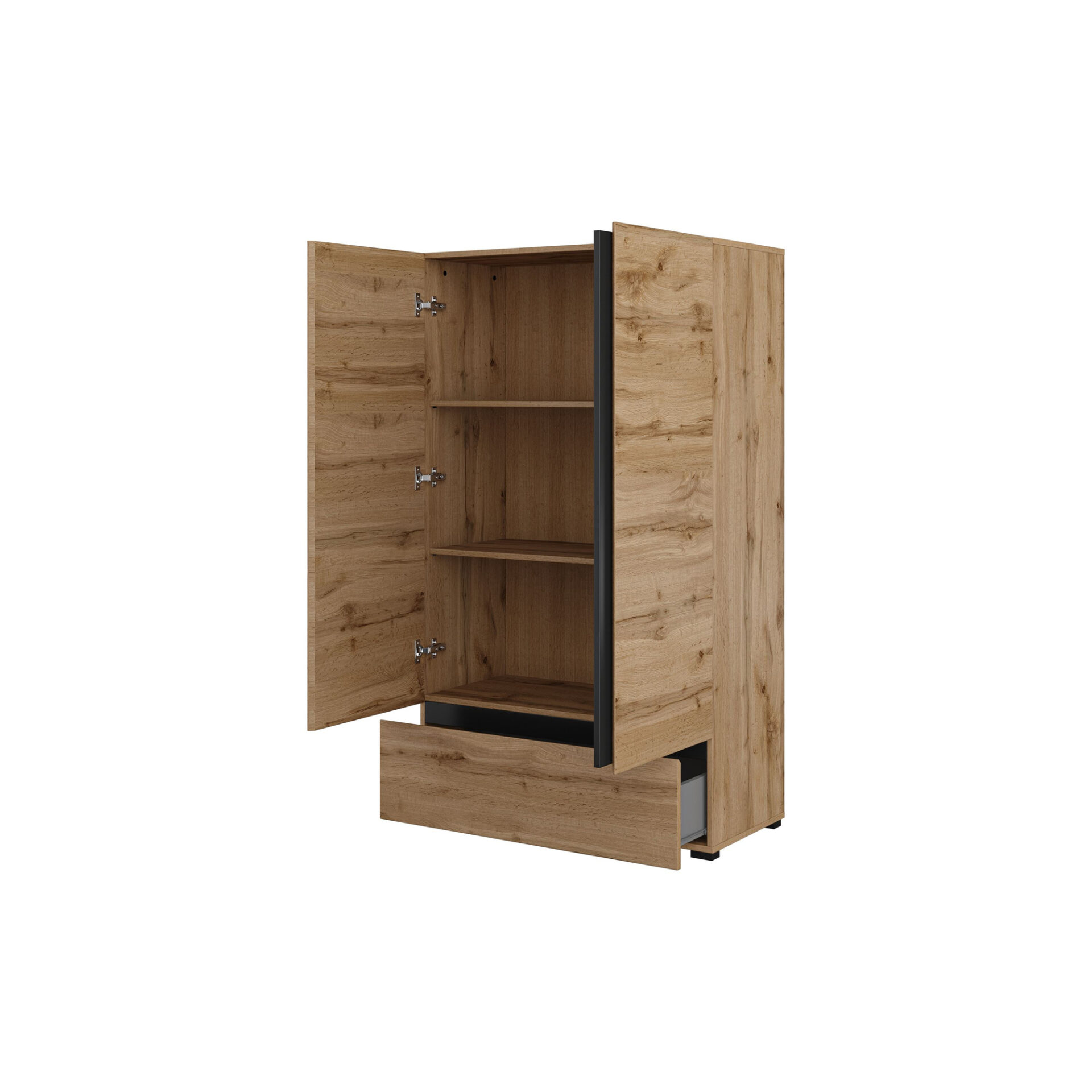 Suteikite savo interjerui stiliaus ir elegancijos su „Cross S“ patalynės spinta iš „Wotan Oak“ ir matinės juodos onikso spalvų. Šis nuostabus baldas ne tik traukia akį savo estetika, bet ir puikiai dera su šiuolaikinėmis tendencijomis. Minimalistinis dizainas ir harmoningas spalvų derinys puikiai tinka tiek erdviems miegamiesiems, tiek jaukiems interjerams. Pagaminta iš aukštos kokybės laminuotos plokštės, ji garantuoja patvarumą ir ilgaamžiškumą, todėl ši patalynės spinta yra idealus pasirinkimas tiems, kurie vertina ir išvaizdą, ir praktiškumą. „Cross S“ patalynės spintos praktiškumas akivaizdus ne tik patraukliame dizaine, bet ir talpoje. Dėl dviejų durelių ir papildomo stalčiaus galite lengvai susitvarkyti drabužius, apatinius ir aksesuarus. „Wotan Oak“ interjeras sukuria malonią atmosferą, o varstomos durys suteikia lengvą prieigą prie laikomų daiktų. Nesvarbu, ar norite susitvarkyti drabužius, ar eksponuoti mėgstamus aksesuarus, šis baldas pateisins jūsų lūkesčius. Be to, „Cross S“ patalynės spinta yra pritaikyta jūsų poreikiams – surinkimui nereikia specialių įgūdžių, o aiškių instrukcijų dėka baldo surinkimas patiems bus tikras malonumas. Stabilios kojelės, pagamintos iš aukštos kokybės medžiagų, suteikia patvarumo, todėl patalynės spinta ne tik maloni akiai, bet ir garantuoja visišką funkcionalumą kasdien naudojant.