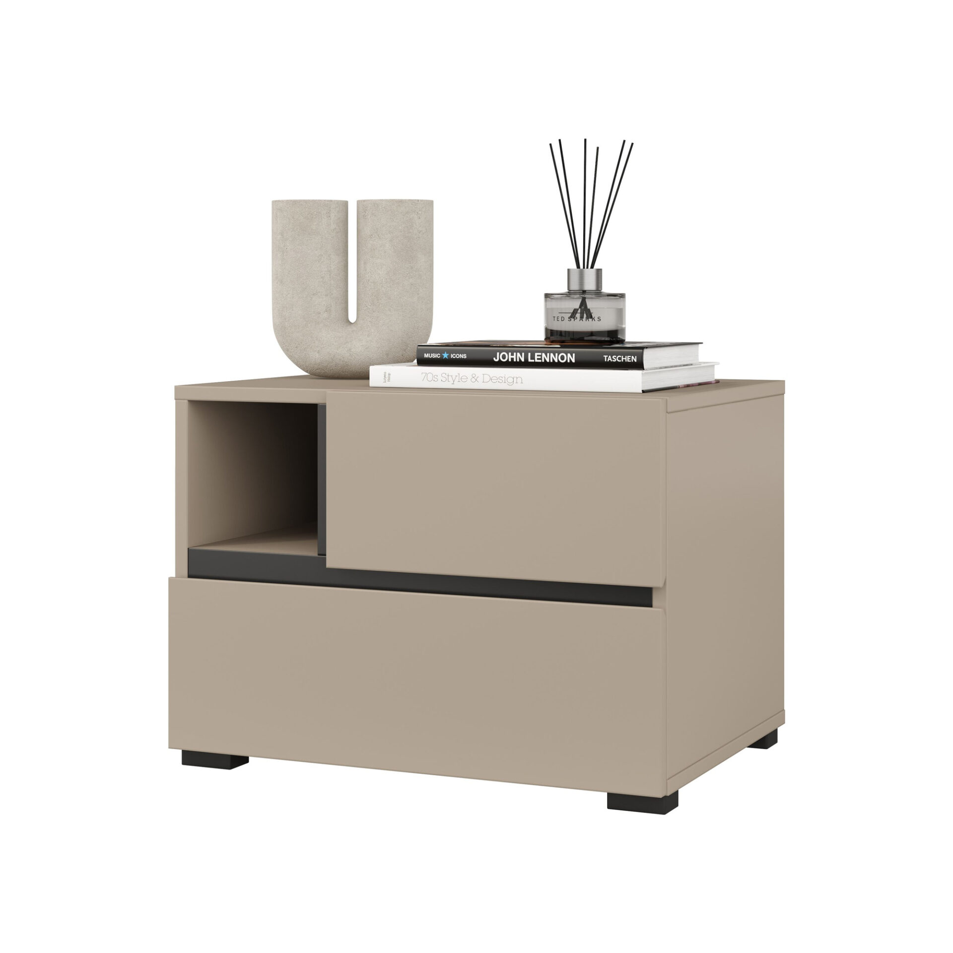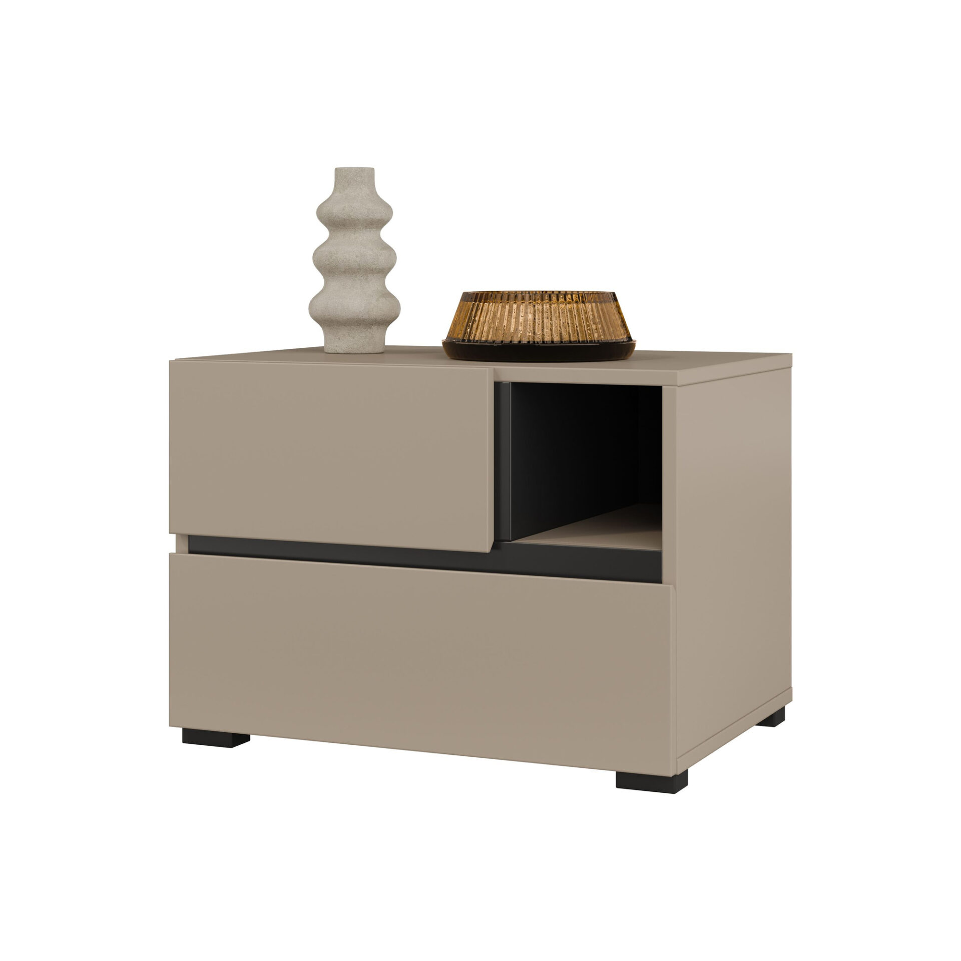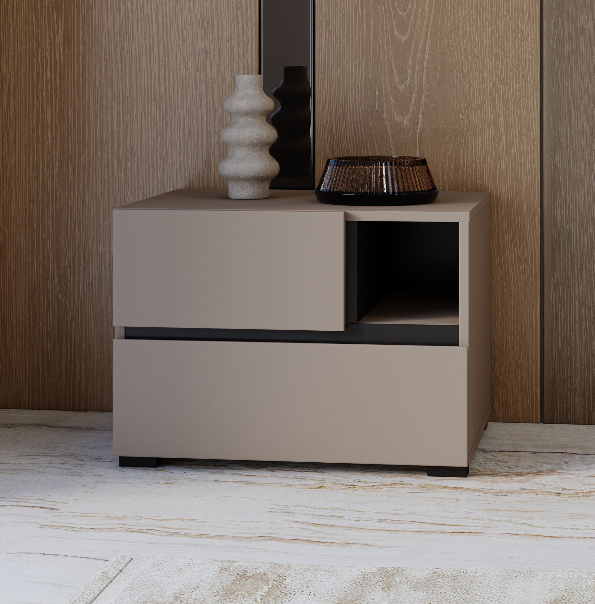 „Cross S“ – Kongo naktinis staliukas su 2 stalčiais, juodo onikso spalvos, matinis