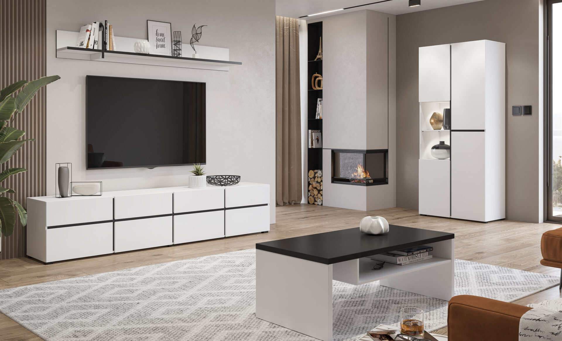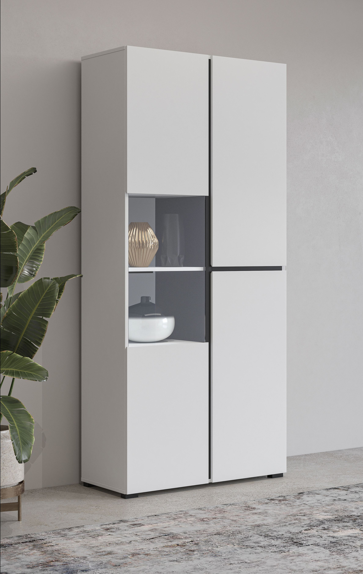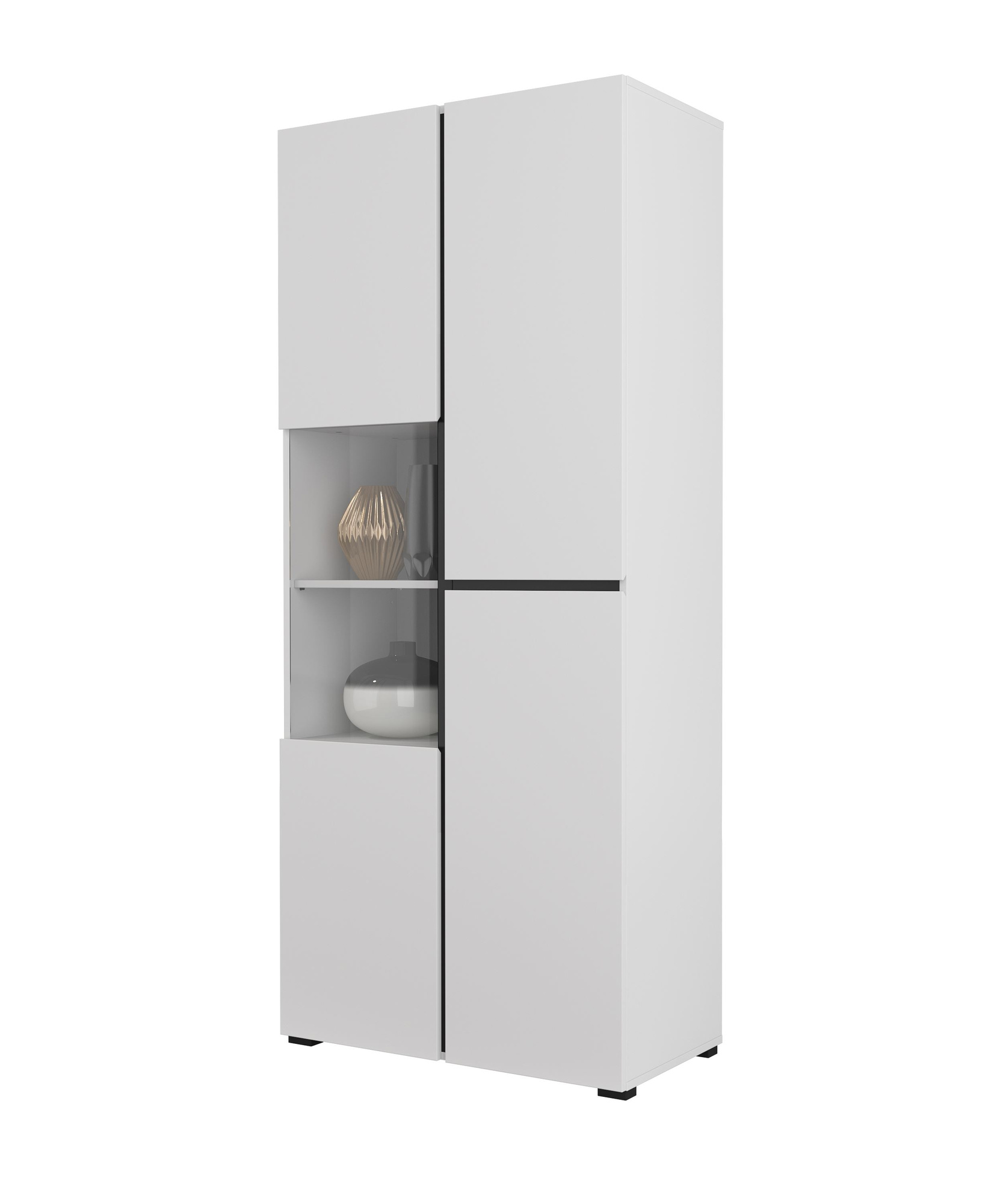 „Cross“ – 3 durų vitrina, balta ir juoda matinė