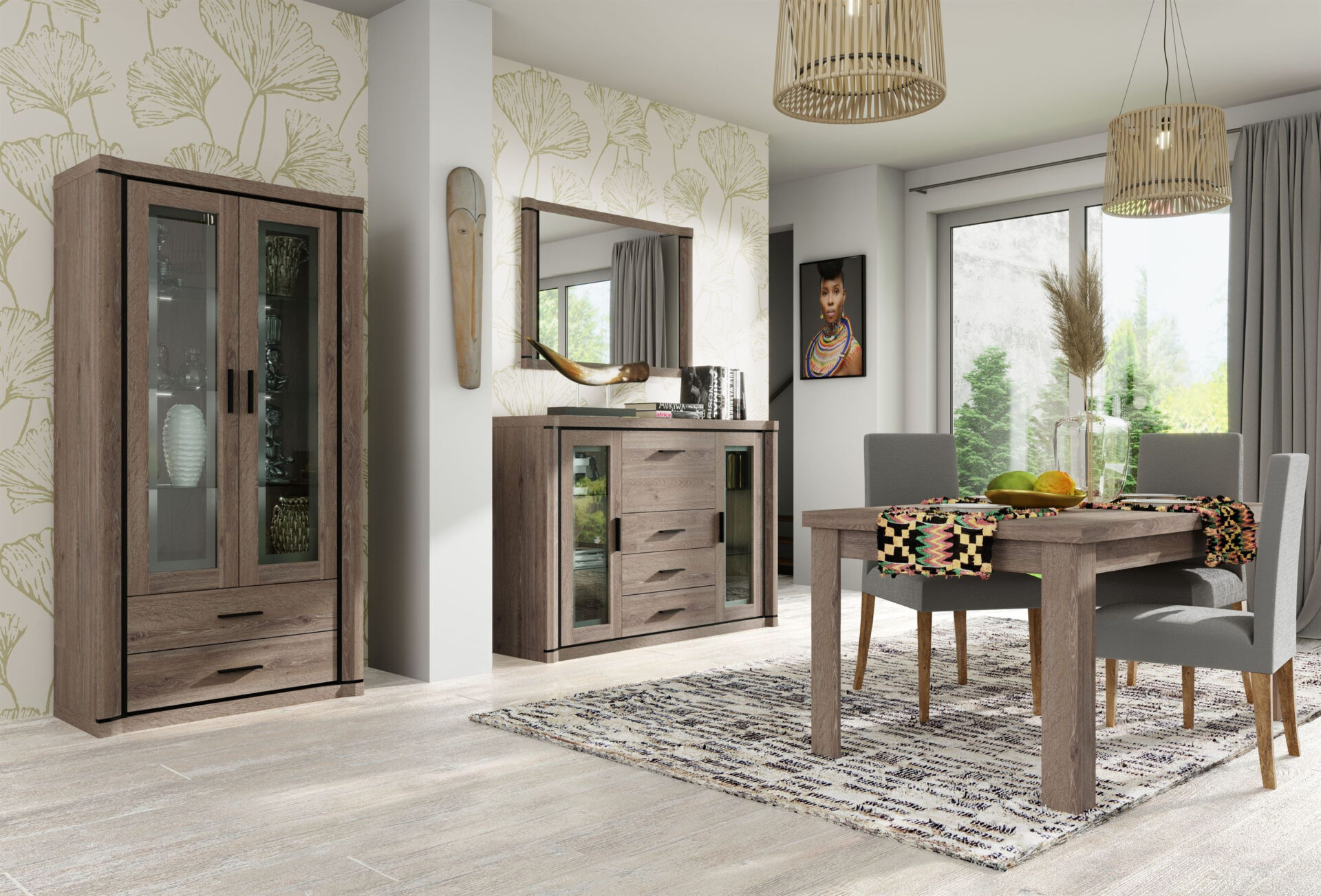 DALLAS-12 televizoriaus staliukas sujungia eleganciją ir funkcionalumą, tikrai pakeisdamas jūsų svetainę. Apdailintas triufelių ąžuolo spalva, šis staliukas sukuria jaukią atmosferą, kuri kiekvieną vakarą paverčia ypatingu. Harmoningos linijos ir kruopšti apdaila traukia akį, todėl idealiai tinka tiek moderniam, tiek klasikiniam interjerui. Vienas iš pagrindinių DALLAS-12 privalumų – apgalvotas funkcionalumas. Sukurtas atsižvelgiant į praktinius poreikius, jis pasižymi erdve dėl trijų lentynų, kuriose puikiai tilps visi jūsų būtini televizoriaus priedai. Dvi šoninės spintelės ne tik suteikia žavesio, bet ir paslepia didesnius daiktus, užtikrindamos tvarką erdvėje. Televizoriaus staliukas derina estetiką su kasdieniu patogumu, sukurdamas puikius namus visai jūsų multimedijos įrangai ir dekoracijoms. Elegantiškos metalinės rankenėlės kartu su subtiliomis apvadais priekyje suteikia elegancijos ir modernumo. Šios detalės kiekvieną baldą paverčia mažu meno kūriniu, kurį jums patiks eksponuoti savo svetainėje. DALLAS-12 yra ne tik baldas, bet ir jūsų stiliaus bei skonio išraiška, kuri tikrai pradžiugins jūsų svečius.