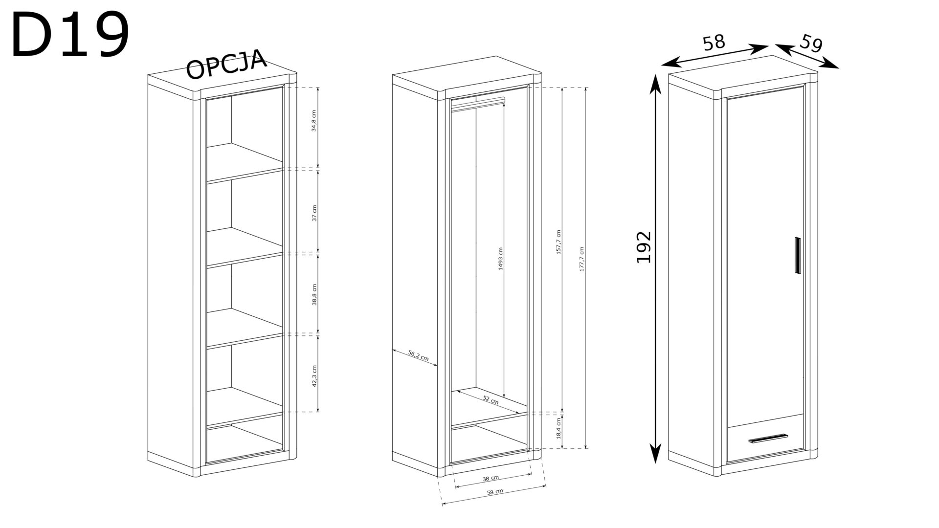 Kviečiame atrasti „Dallas-19“ spintą, kurioje dera paprastumas ir elegancija, todėl tai puikus sprendimas bet kokiam interjerui. Pagaminta iš aukštos kokybės laminuotos plokštės, pasižyminčios įspūdinga triufelių ąžuolo spalva, ši spinta taps ne tik funkcionaliu baldu, bet ir reikšmingu dekoratyviniu akcentu. Jos prislopintas atspalvis puikiai dera su įvairiais interjero stiliais – nuo modernaus iki klasikinio, todėl tai universalus baldas, suteiksiantis charakterio bet kokiam kambariui. „Dallas-19“ spintos viduje slypi apgalvoti sprendimai, leidžiantys efektyviai valdyti erdvę. Su vienu stalčiumi ir pakaba drabužiams, ji siūlo daug vietos jūsų drabužiams ir aksesuarams. Dėl sumanios organizacinės sistemos galite lengvai susitvarkyti savo daiktus, todėl kasdienis naudojimas bus malonus. Tai puikus pasirinkimas tiems, kurie vertina tvarką ir funkcionalumą savo aplinkoje. Elegantiškos juodos metalinės rankenėlės – detalė, pabrėžianti modernų šios spintos charakterį. Jų dizainerio išvaizda harmoningai dera su juodais akcentais, suteikdama spintai unikalų stilių. Įsirengę šį baldą svetainėje, prieškambaryje ar miegamajame, iš karto pajusite interjero atmosferos pasikeitimą – jis pradės spinduliuoti elegancija ir prašmatnumu.