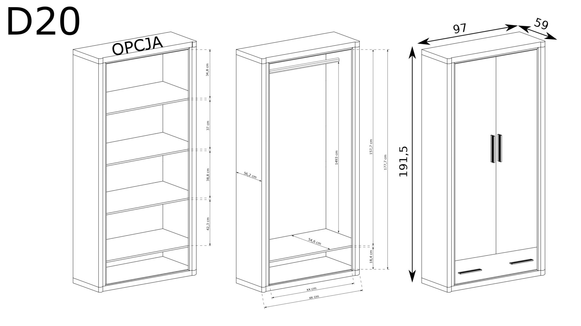 Būkite pirmas aprašęs “DALLAS-20 – Dviejų durų spinta iš „Truffle Oak“ spalvos”