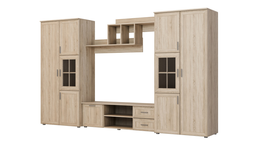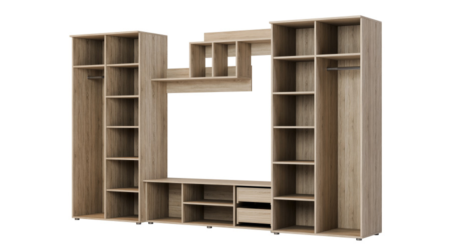 Daugiafunkcinė sieninė spintelė su spintomis ir televizoriaus zona 330 × 200 cm Sonoma Jasna – JOWISZ