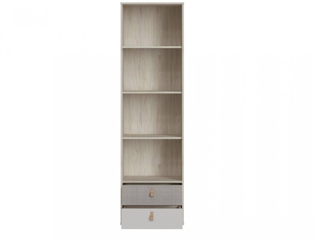 Pristatome unikalią „Denim DEIR01“ knygų lentyną iš kolekcijos, kuri puikiai tiks bet kurioje jaunimo ar vaikų erdvėje. Ji suteikia interjerui modernumo ir unikalaus stiliaus, kartu būdama išskirtinai funkcionaliu baldu. Ši knygų lentyna – puiki investicija į jūsų vaiko kambario estetiką ir tvarką. „Denim DEIR01“ knygų lentynos plotis – 58,2 cm, aukštis – 205,7 cm, o gylis – 40 cm, todėl erdvė išnaudojama optimaliai. Ji pagaminta iš aukštos kokybės laminuotos plokštės, atsparios kasdieniam dėvėjimuisi, įbrėžimams ir drėgmei, tuo pačiu išlaikant natūralią riešutmedžio išvaizdą šviesiame Rokfordo atspalvyje, kuris suteikia kambariui šilumos ir harmonijos. Knygų lentynos estetika derina klasikinę eleganciją su moderniu akcentu. „Cashmere“ ir „Caroline“ spalvos sukuria subtilų kontrastą su šiltu riešutmedžio atspalviu, suteikdamos baldui išskirtinę išvaizdą. Natūralios odos rankenos yra ne tik dekoratyvios, bet ir praktiškos, todėl baldu lengviau naudotis kasdien.