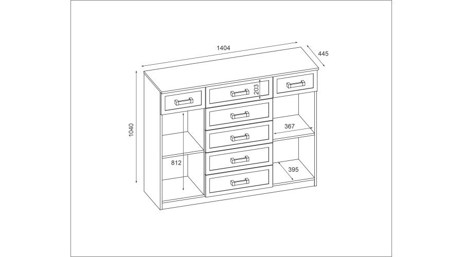 Didelė komoda su stalčiais ir spintelėmis, 140 cm, Olcha – SILVA