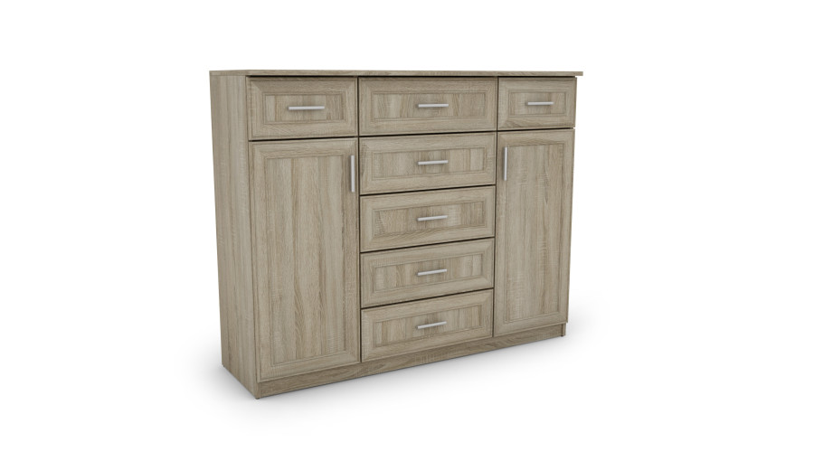 Didelė komoda su stalčiais ir spintelėmis 140 cm Sonoma Jasna – SILVA