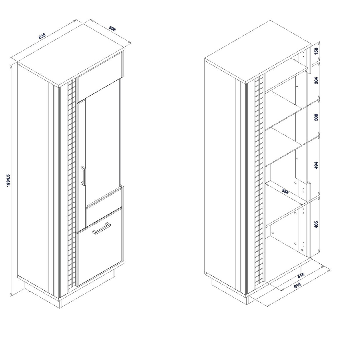 Plotis 63,5 cm Gylis 39,5 cm Aukštis 192 cm Produkto svoris su pakuote 56,15 kg Gamintojo kodas / simbolis DN07 Kolekcijos pavadinimas DORIAN Pavadinimas b2b sistemoje DORIAN DN-7 balandžio ąžuolo/juodos spalvos EKSPONUOJAMAS P rinkinys Produkto pakuočių skaičius 3 Stilius Modernus Įranga Surinkimo instrukcijos / surinkimo priedai Surinkimas Savarankiškam surinkimui Korpuso spalva April Oak / Juoda Korpuso medžiaga / tipas / storis 16 mm baldų plokštė / Juostelė 16 mm MDF baldų plokštė Viršutinio korpuso medžiaga / tipas / storis 22 mm baldų plokštė Apatinio korpuso medžiaga / tipas / storis 22 mm baldų plokštė Pagrindo korpuso medžiaga / tipas / storis 16 mm baldų plokštė Galinės sienelės medžiaga / tipas / storis 2,5 mm HDF baldų plokštė Matoma galinės sienelės dalis Juoda Priekinė spalva April Oak Priekinė medžiaga / tipas / storis 18 mm MDF baldų plokštė Priekinis vyris ⌀ 35 mm, reguliuojamas trijose plokštumose Priekinė rankena / medžiaga / spalva Plastikas / juoda Glazūruotos priekinės dalies medžiaga / stiklo spalva Grūdintas / Antisol grafitas Glazūruoto priekinio stiklo storis 4 mm Stiklinės lentynos spalva Stiklas Bespalvė Stiklinė lentyna Stiklo storis 6 mm stiklinių lentynų kiekis 2 Išorinis apšvietimas Standartinis variantas Išorinio apšvietimo šviesos spalva Šiltai balta Išorinio apšvietimo energijos klasė A++ Švelnaus uždarymo durelių sistema Standartinis variantas Kojelė / apdaila / spalva Nereguliuojama / Baldų bėgeliai / plastikas / juoda Durelių skaičius 2 Uždarų nišų skaičius už priekinio stiklo 3 Uždarų nišų skaičius 2