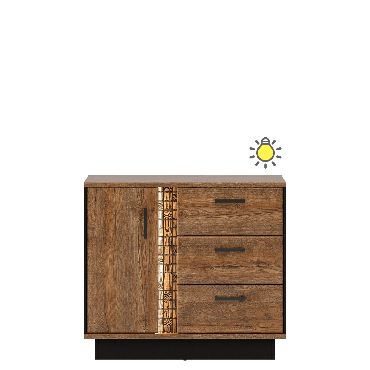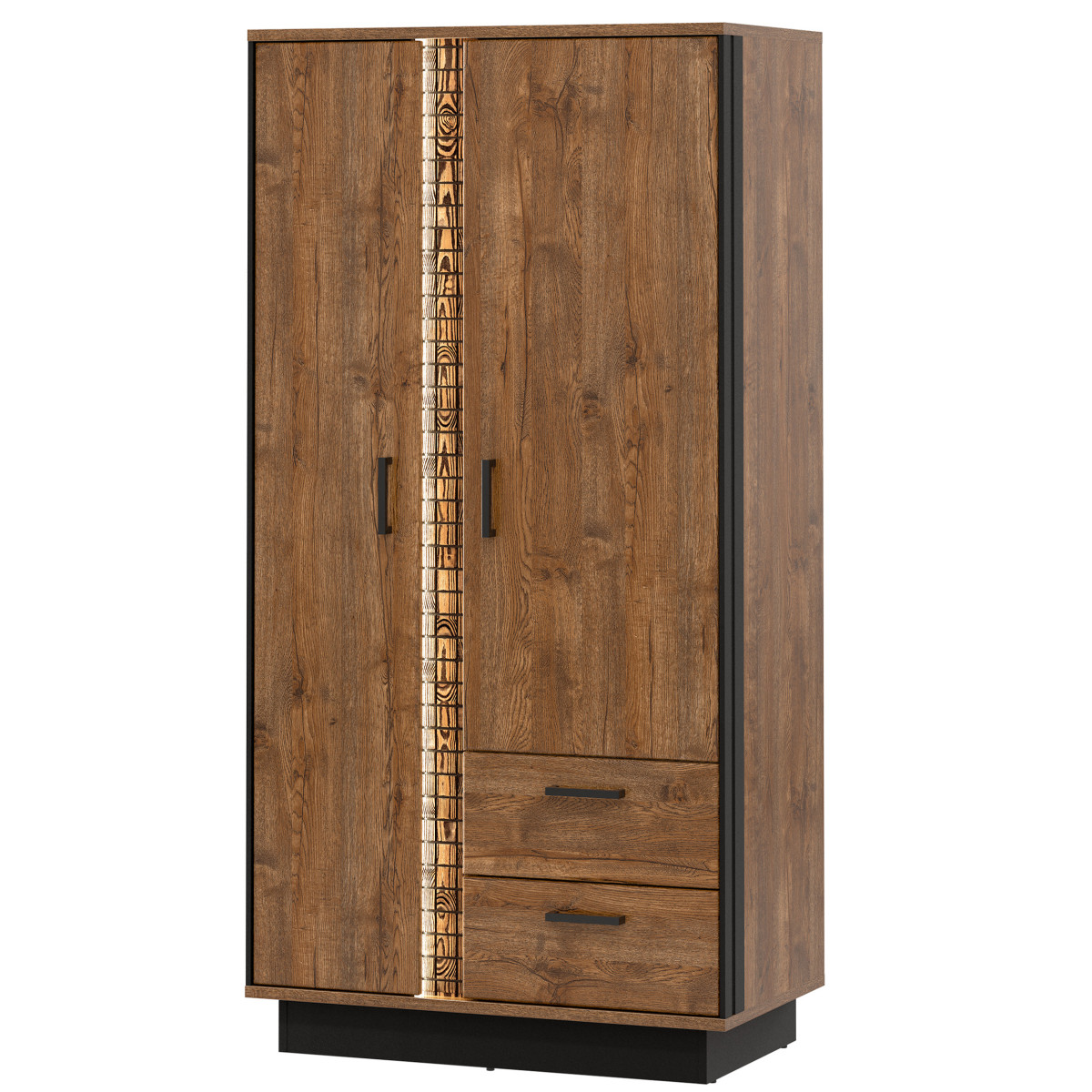 Spinta DORIAN DN09 – universalus baldas, kuris lengvai tilps bet kuriame svetainėje ar darbo kambaryje. Dviejų durų spinta pasižymi funkcionalia erdve, turi du stalčius, drabužių kabyklą ir viršutinę nišą patogiam drabužių laikymui. „April Oak“ spalvų gamą papildo juodos spalvos akcentai, pabrėžiantys bendrą spintos stilių. Natūralaus medžio juostelė su LED apšvietimu suteikia papildomo žavesio. Šiltos spintos spalvos ir minimalistinė forma sukurs patrauklų, modernų interjerą ir jaukią atmosferą. Spinta idealiai tinka derinti su kitais DORIAN serijos baldais arba naudoti kaip atskirą baldą, leidžiantį jums suasmeninti savo kambario dizainą.