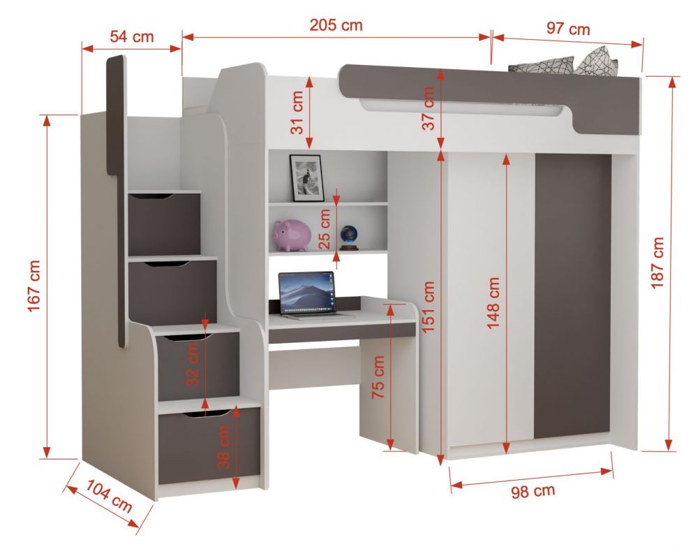 Dorian mezzanine dviaukštė lova 90×200 cm