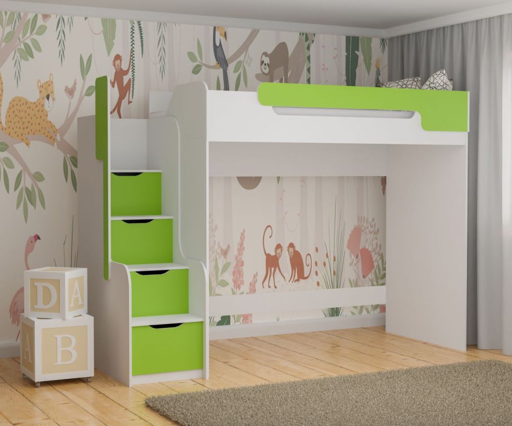 Uždarų lentynų išdėstymas lovos pakopose leidžia laiptams atlikti lentynos funkciją, todėl šis modelis tampa dar patrauklesnis, nes sukuriama papildomos vietos daiktams susidėti. Laiptus galima išdėstyti tiek dešinėje, tiek kairėje pusėje.