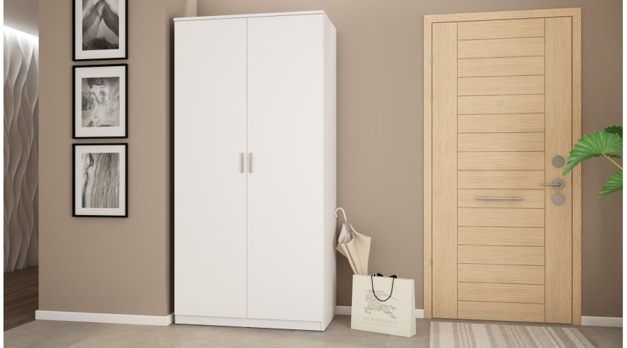 Balta spinta „100“ – puikus sprendimas mažam miegamajam ar prieškambariui. Ji ne tik leidžia patogiai susidėti kasdienius daiktus, bet ir vizualiai padidina erdvę bei suteikia jai lengvumo pojūtį.