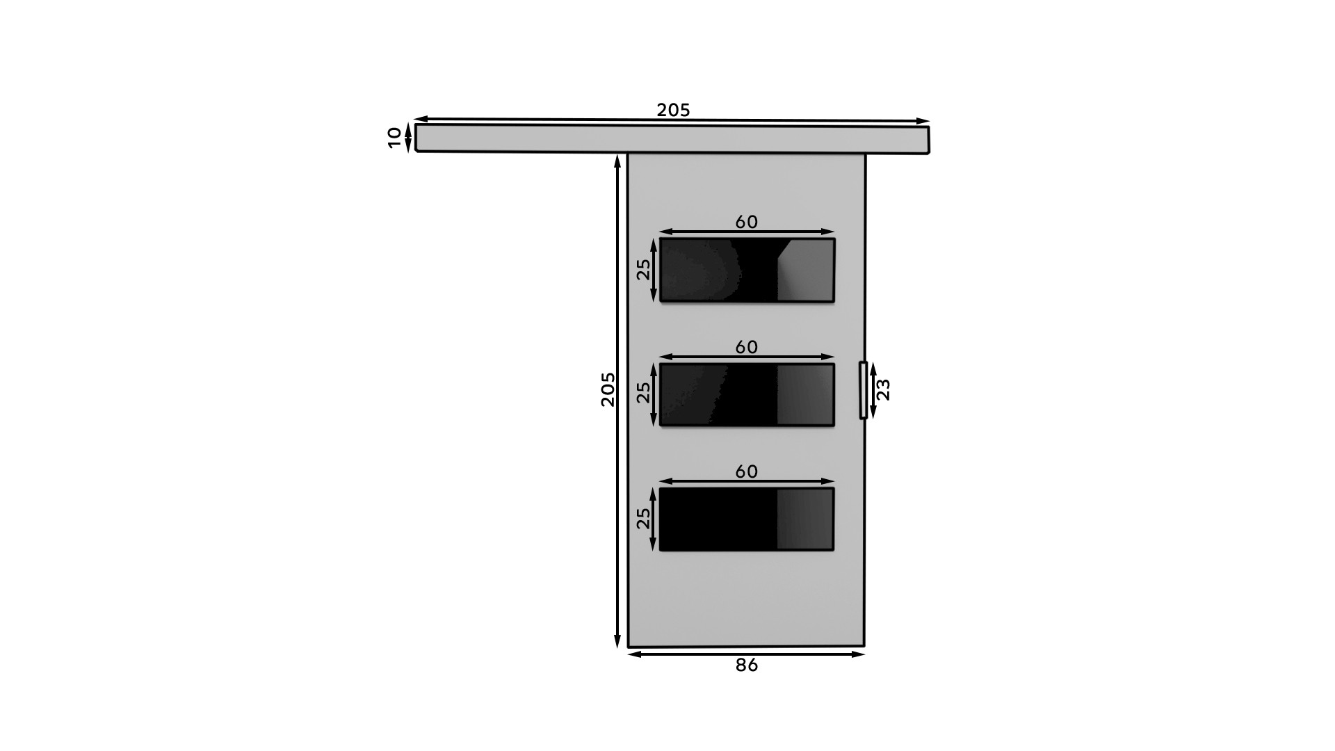 ARES 86 prie sienos tvirtinamos stumdomos durys, baltos/juodos, Lacobel ADRK