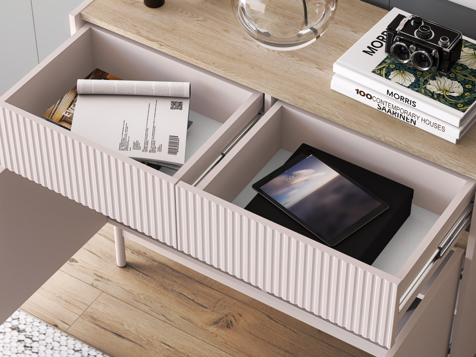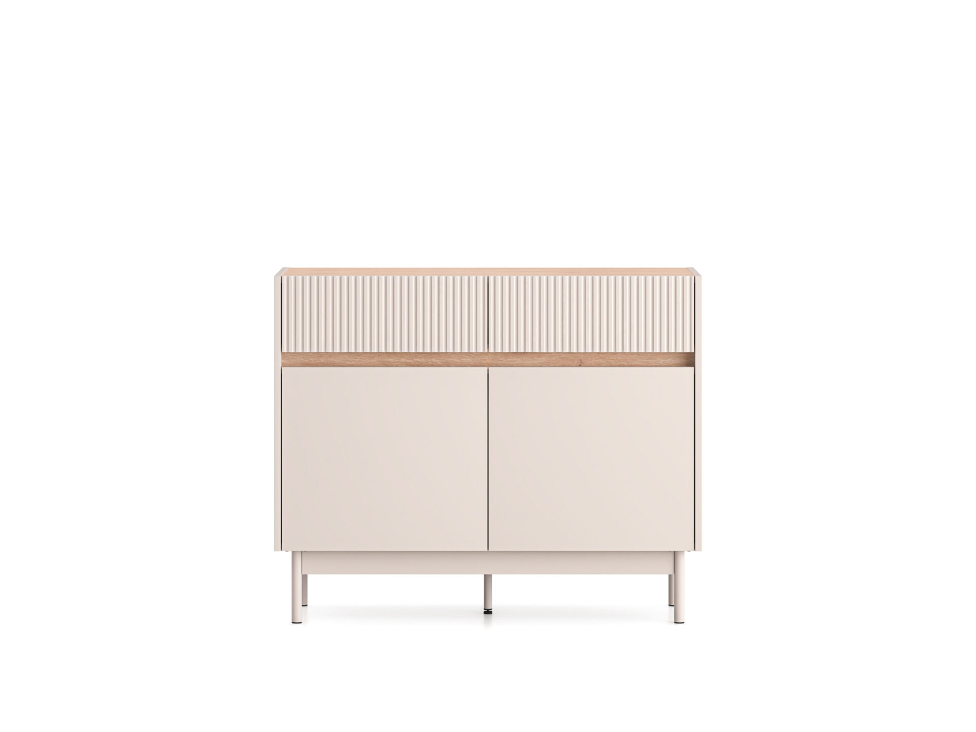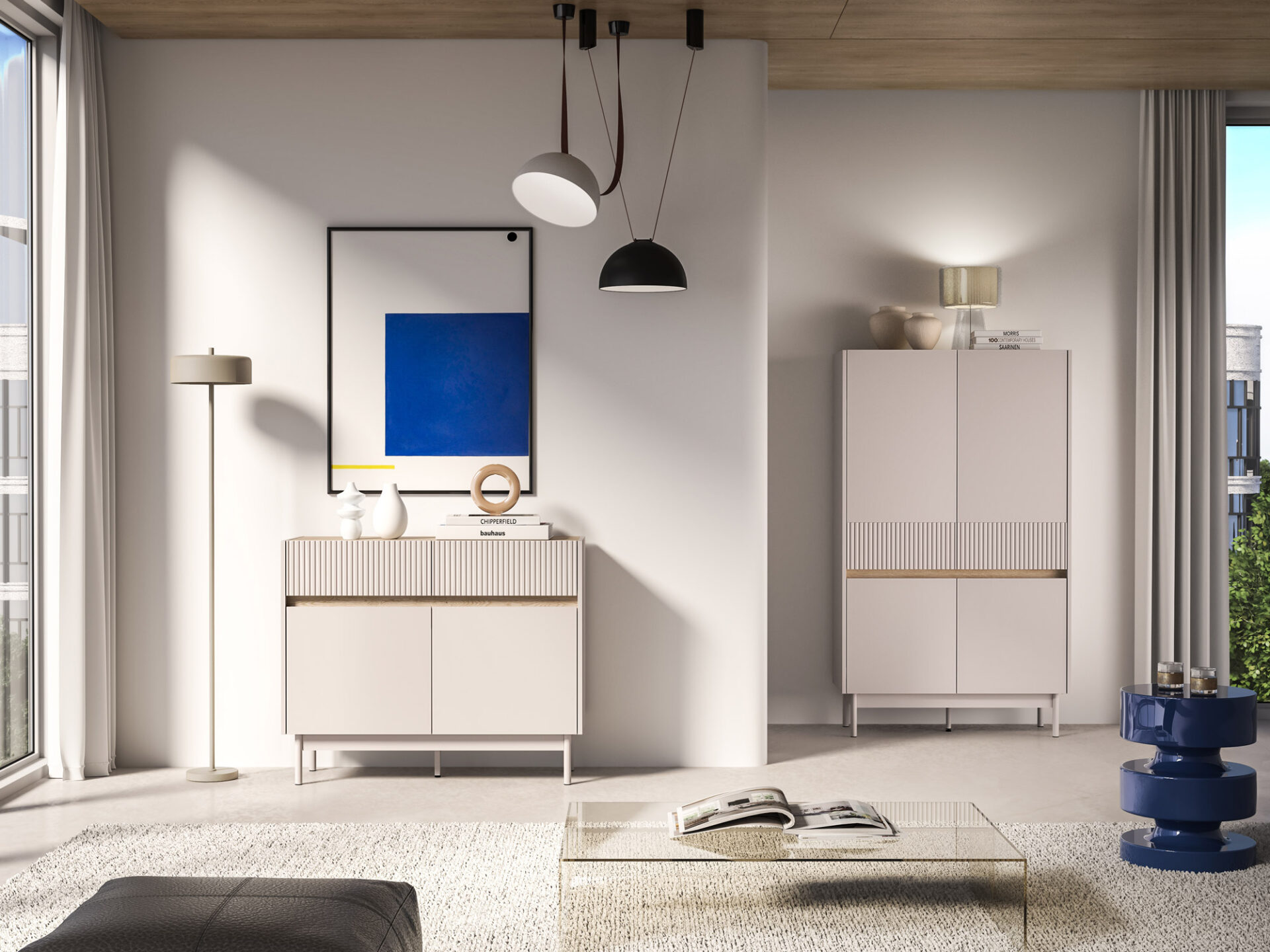 Kompaktiška komoda „Dunea 06“ – puikus sprendimas daiktų laikymui. Už durelių yra keturi erdvūs skyriai, puikiai tinkantys drabužiams, rankšluosčiams ir stalo įrankiams laikyti. Viršutinėje dalyje yra du stalčiai, puikiai tinkantys dokumentams ar namų tekstilei. Platus stalčius puikiai tinka elegantiškoms vazoms ar kelionių suvenyrams eksponuoti. Rinkitės „Dunea“ komodą ir palaikykite tvarką savo interjere.