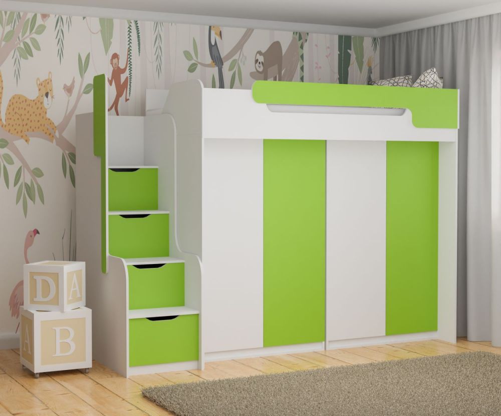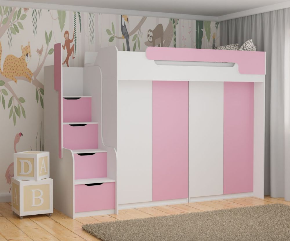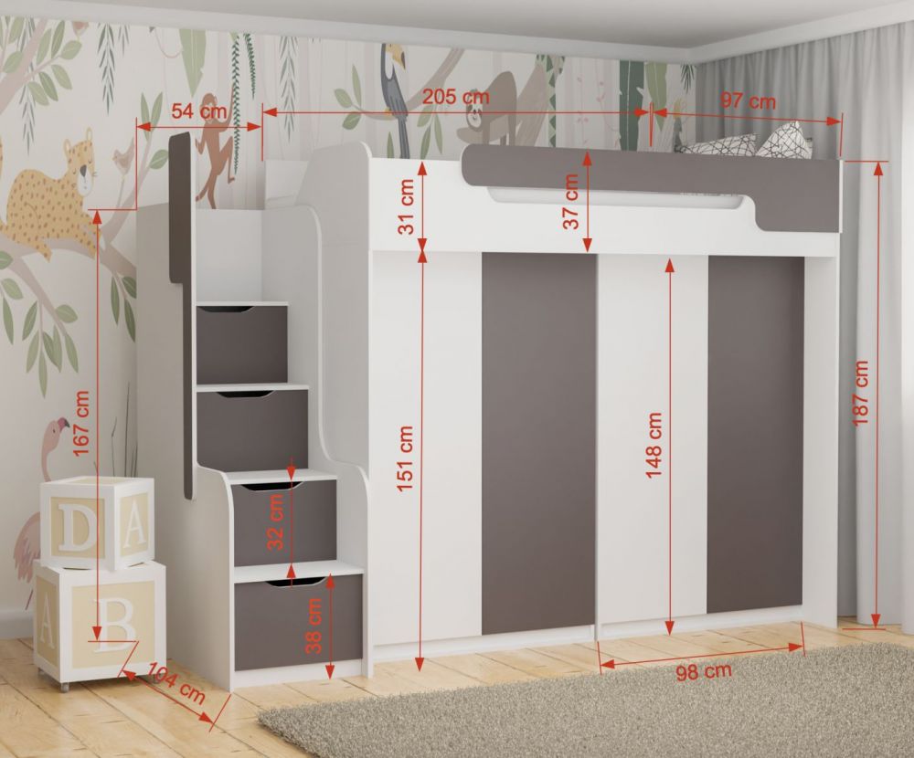 Dviaukštė lova DORIAN III antresolėje su dviem spintomis 90×200 cm