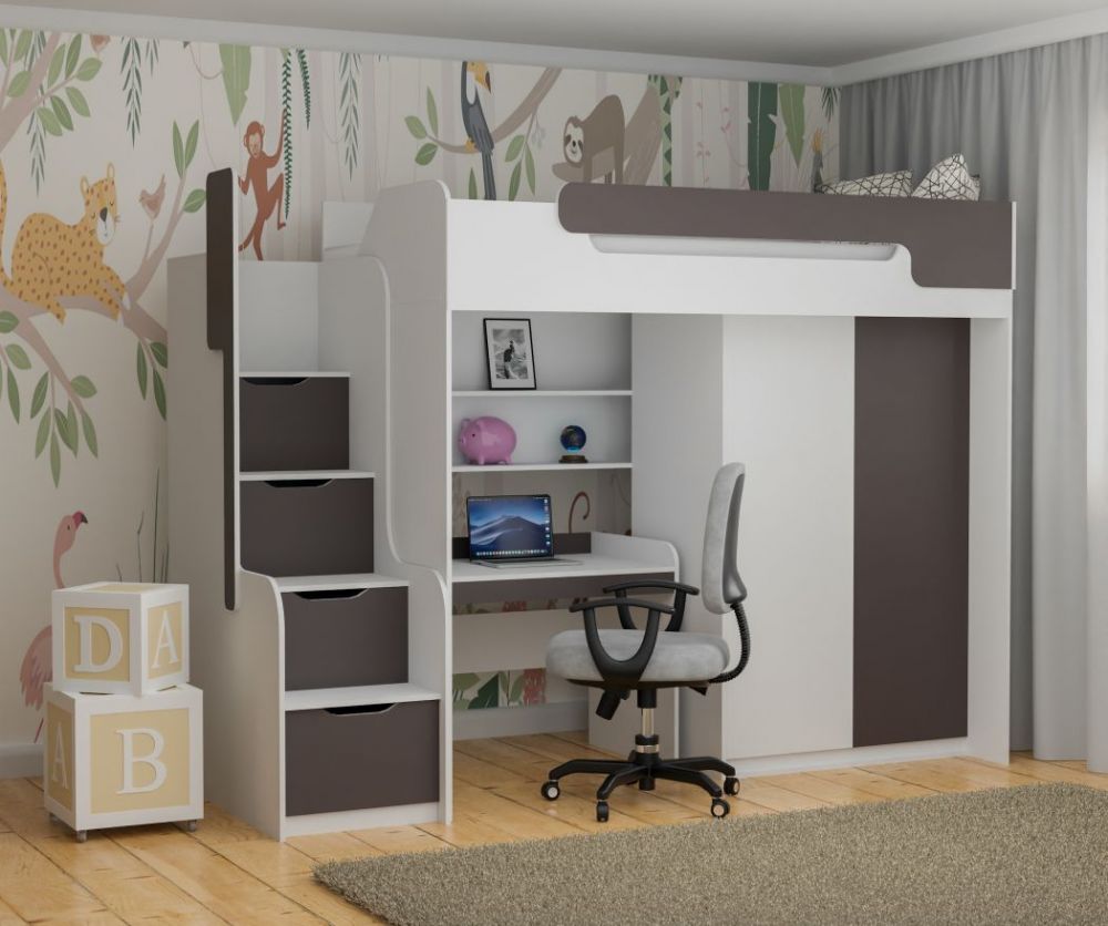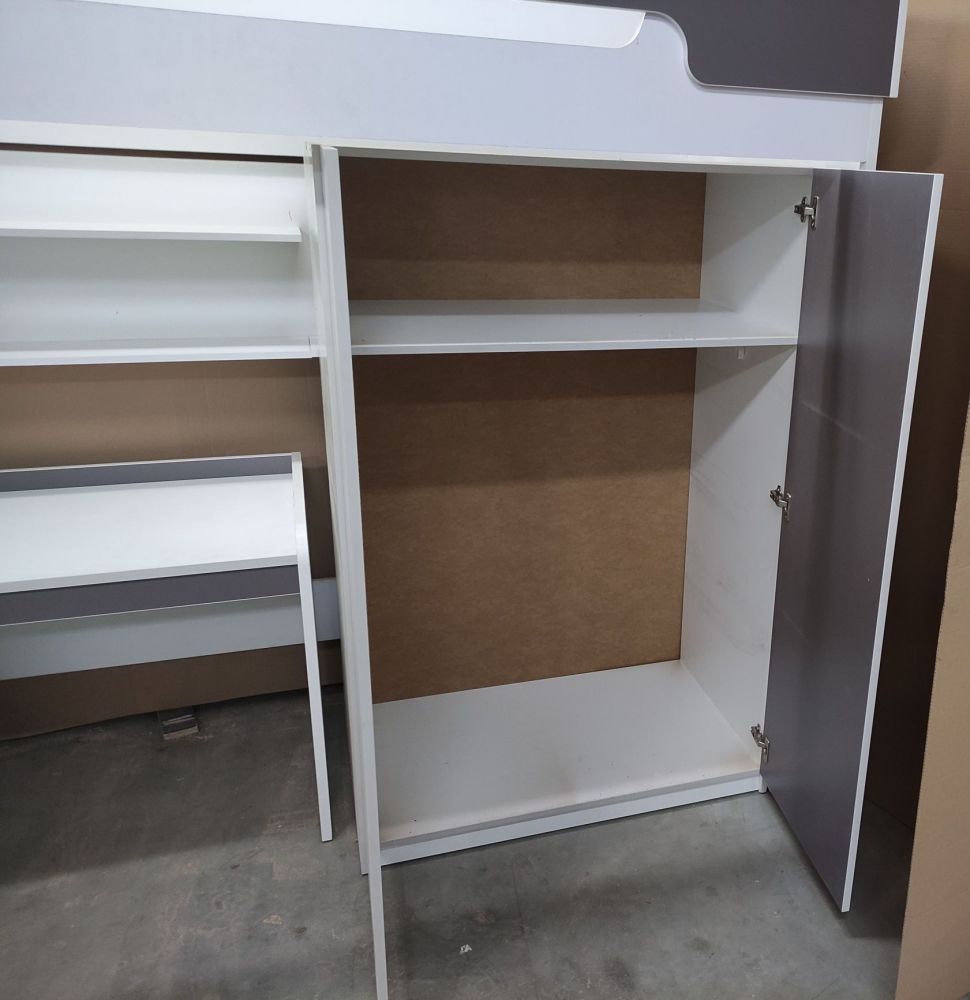 Dviaukštė lova DORIAN I antresolėje su spinta, stalu ir lentynomis 90×200 cm