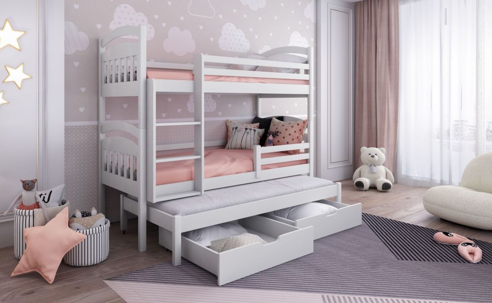 Dviaukštė lova su stalčiais JAKUB III 3 asmenims 80×181 cm