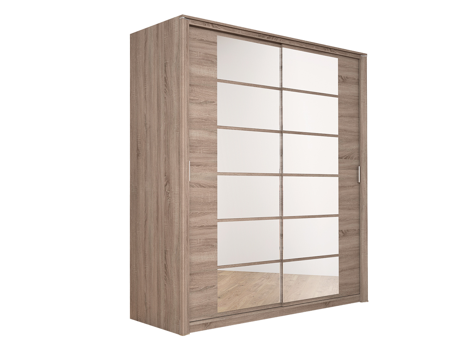 EBON – moderni ir erdvi stumdoma spinta su veidrodžiais. Ši spinta puikiai atrodys elegantiškame miegamajame, prieškambaryje ar net paauglio kambaryje. Ji pagaminta iš aukštos kokybės laminuotos plokštės. Didelis veidrodis – puikus akcentas, ne tik papildantis stilių, bet ir vizualiai padidinantis bei pašviesinantis kambarį. Spintos viduje yra praktiškos lentynos ir pakabos. Galima rinktis iš įvairių spalvų.