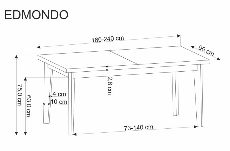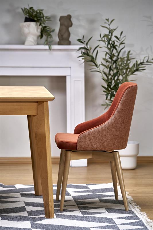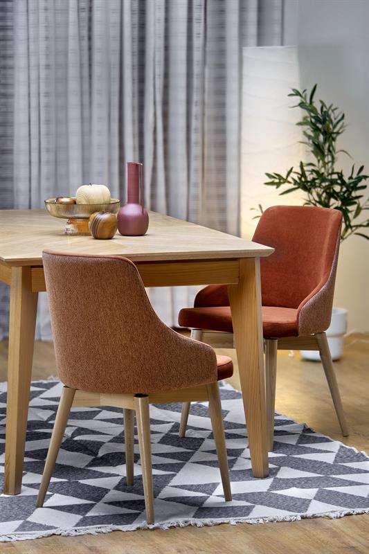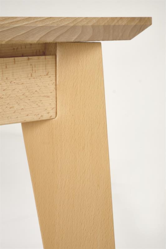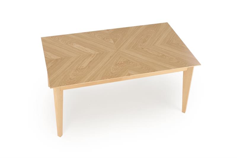 Matmenys: 160–240/90/75/140 cm; prailginamas stalas, medžiaga: laminuota medžio drožlių plokštė + natūralus ąžuolo lukštas / masyvi buko mediena, spalva: stalviršis – natūrali, kojelės – natūralios