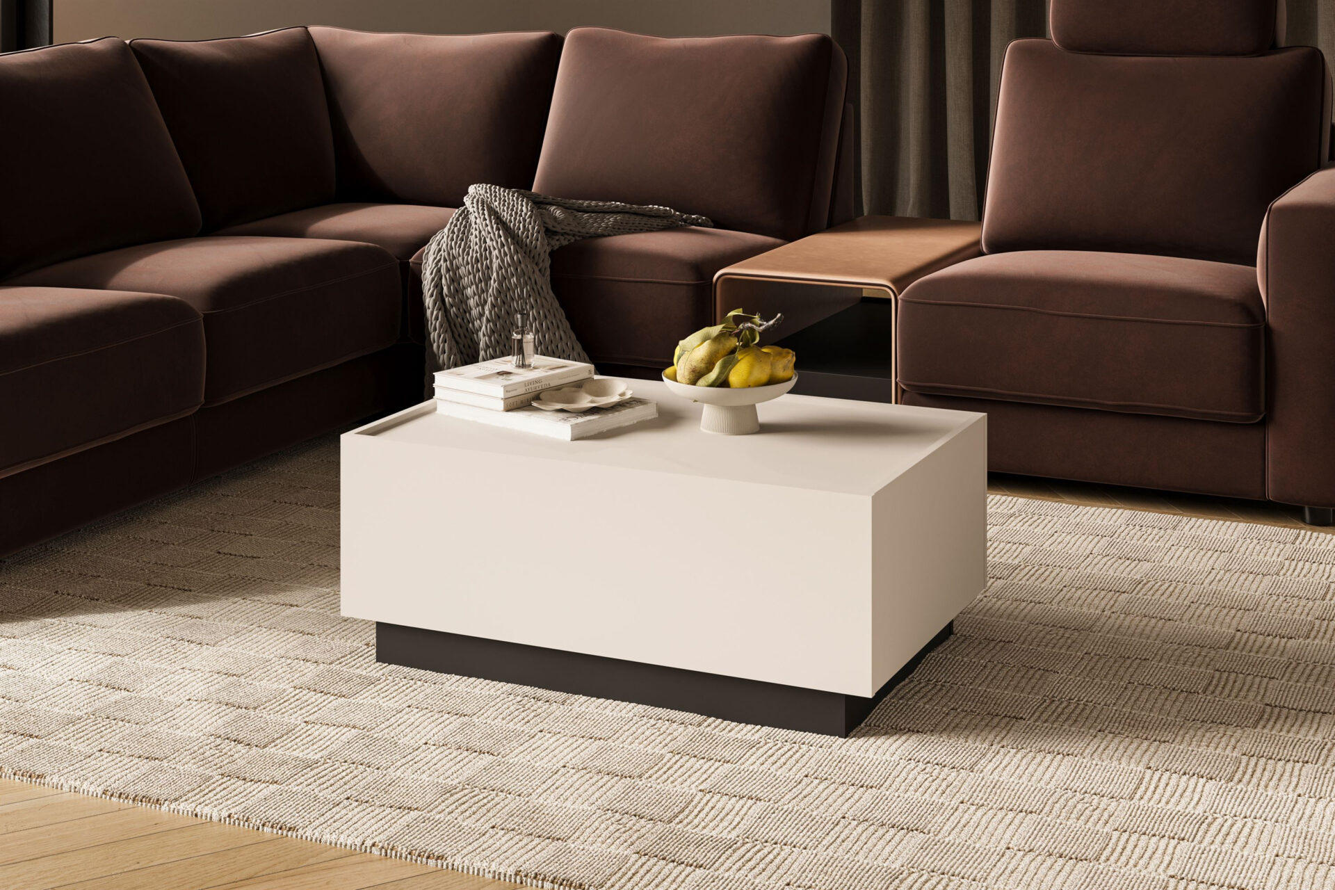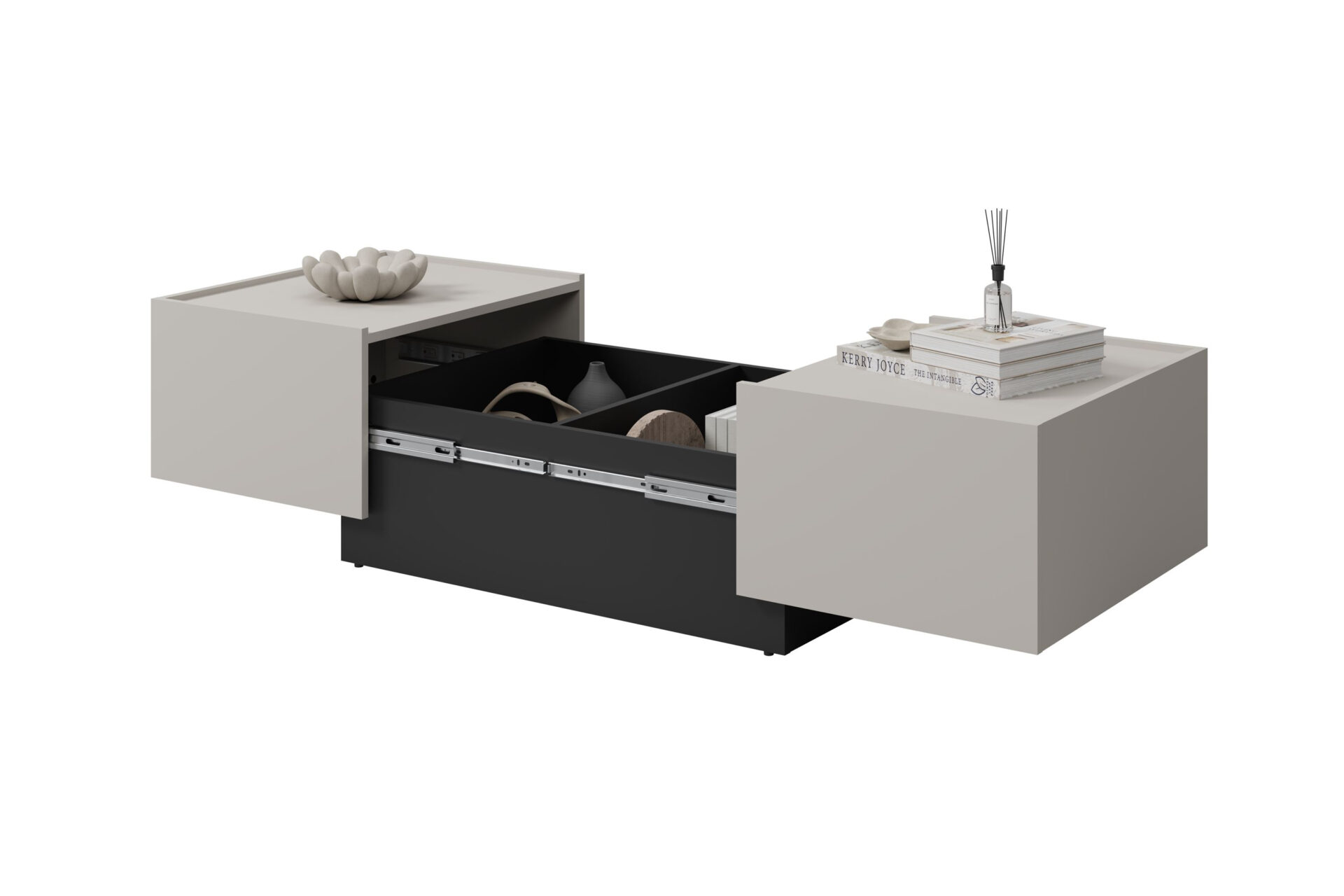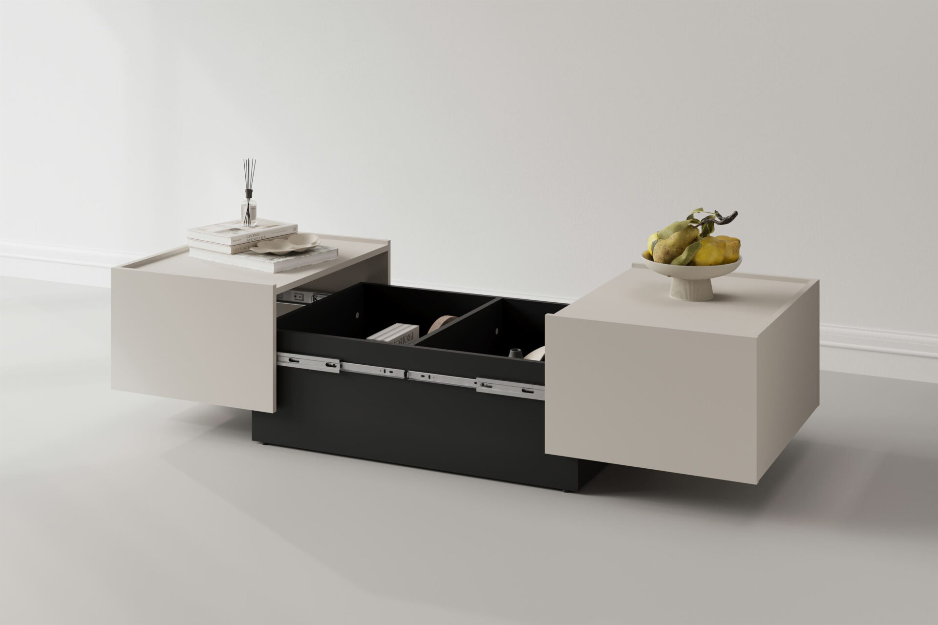 „Helvetia“ ištraukiamas kavos staliukas „Kashmir Black Onyx“ – tai tobulas elegancijos ir funkcionalumo derinys, kuris pradžiugins kiekvieną modernaus dizaino mylėtoją. Minimalistinė forma sklandžiai įsilies į bet kokį interjerą, suteikdama prabangos. Dėl universalios kašmyro spalvos ir matinių juodų kojelių staliukas lengvai tiks tiek klasikiniame, tiek moderniame interjere ir taps jūsų svetainės traukos centru. Didžiausias stalo privalumas – ištraukiamas mechanizmas. Jį galite pritaikyti prie savo poreikių, todėl jis idealiai tinka susibūrimams su draugais, šeimos susibūrimams ar romantiškoms vakarienėms. Dėl paprastos formos stalą lengva ištiesti, o sukurti daugiau erdvės – vienas juokas. Tai kiekvieną namuose praleistą akimirką pavers dar ypatingesne. Staliukas pagamintas iš aukštos kokybės medžiagų, užtikrinančių ne tik estetinę išvaizdą, bet ir ilgaamžiškumą. Laminuotos lentos garantuoja atsparumą įbrėžimams ir lengvą valymą. Metalinės kojelės suteikia stabilumo ir kartu prisideda prie modernaus baldo išvaizdos. Galite būti tikri, kad sužavėsite savo svečius ne tik elegancija, bet ir apgalvotu požiūriu į kokybę.