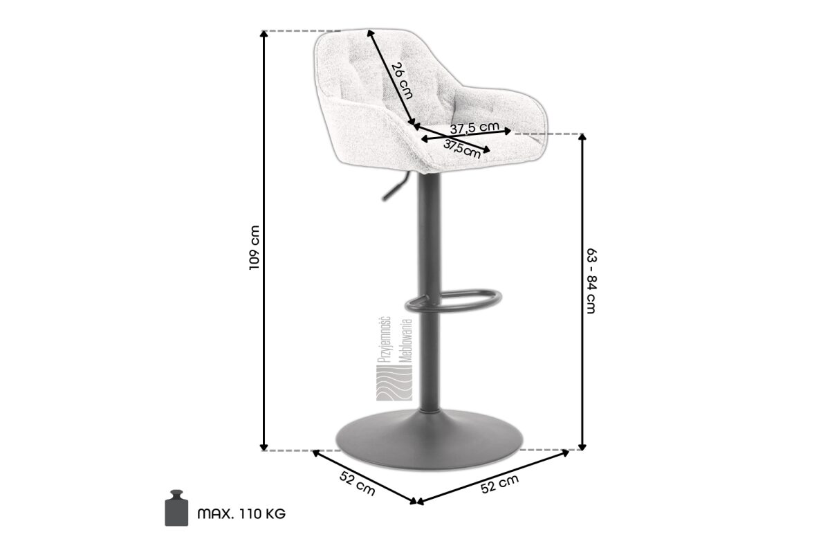 MEDŽIAGOS „Monza“ audinys / milteliniu būdu dažytas plienas, FUNKCIJA 360° pasukamas pagrindas Reguliuojama sėdynė, AUKŠTIS, STILIUS Modernus / Loftas, KITA Gaminys skirtas savarankiškam surinkimui su pateiktomis instrukcijomis MAKSIMALI APKROVA 110 kg