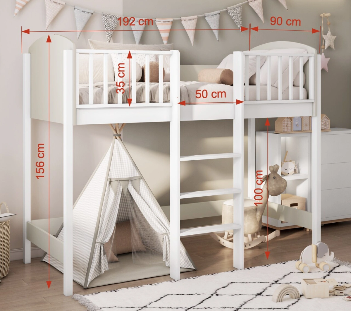 „Evita“ palėpės lova sukurta iš pušies medienos, kuri kruopščiai tikrinama dėl patvarumo ir saugos savybių.
