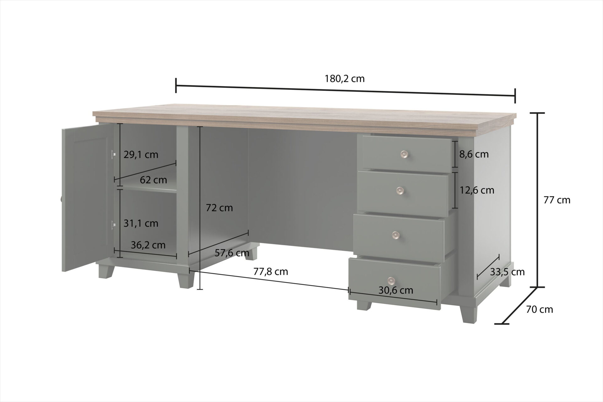 Evora biuro stalas, 1D4S, žalias ąžuolas, Lefkas