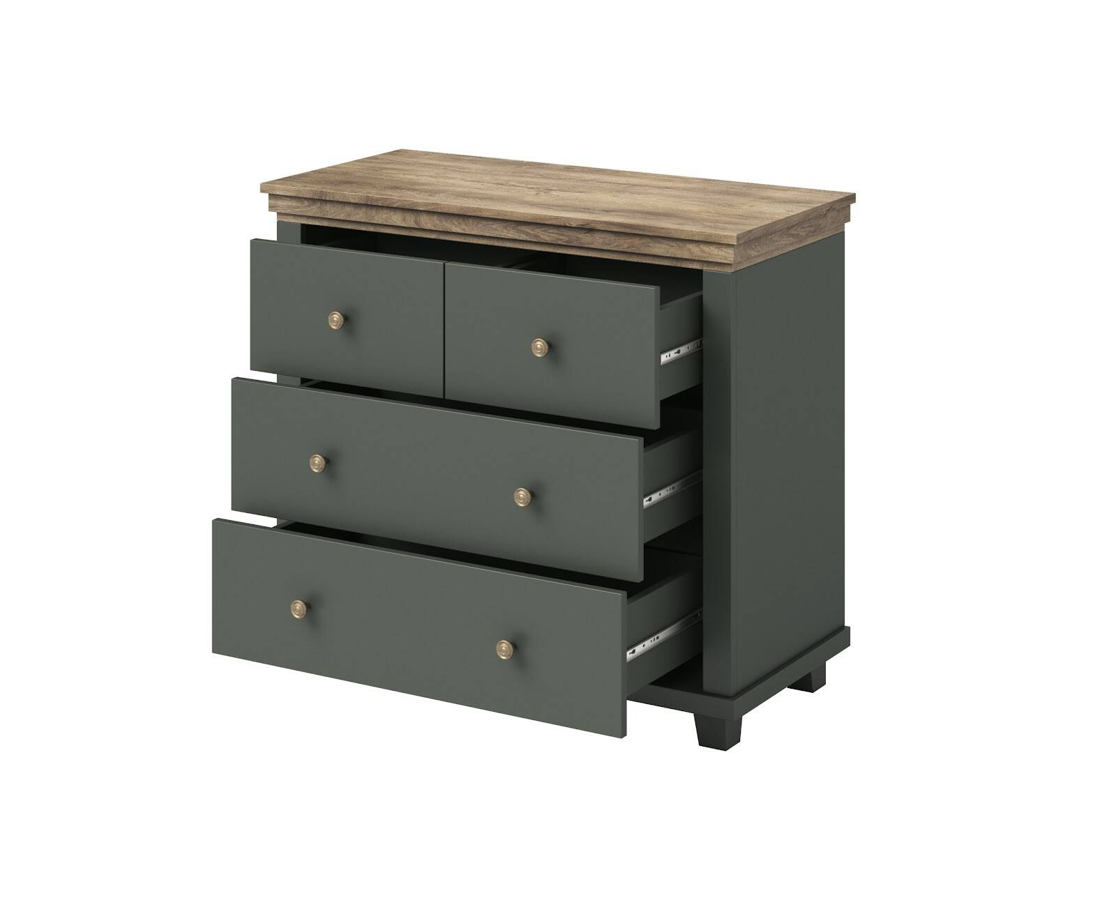 „Evora S“ komoda su 4 stalčiais, žalia / Lefkas ąžuolas