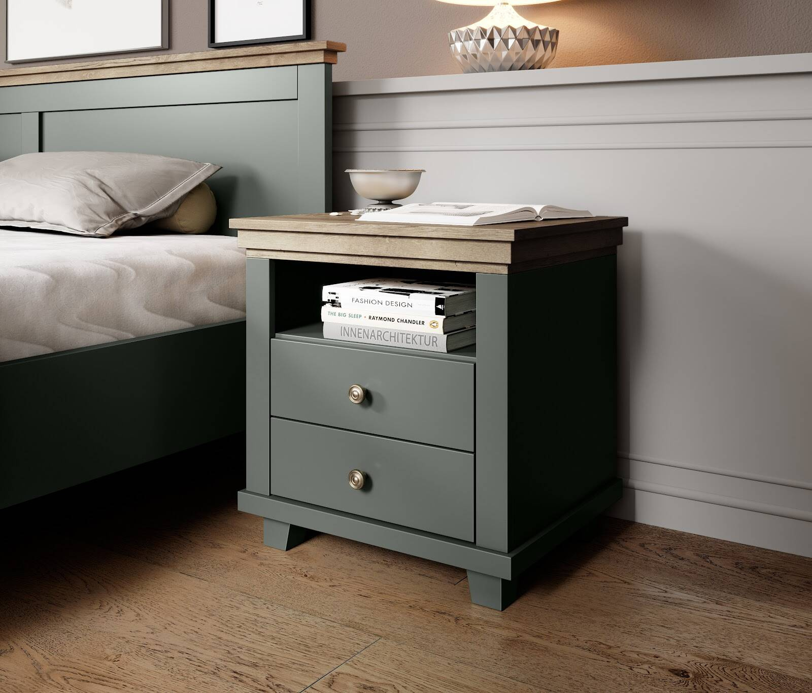 „Evora S“ naktinis staliukas su 2 stalčiais, žalias / Lefkas ąžuolas