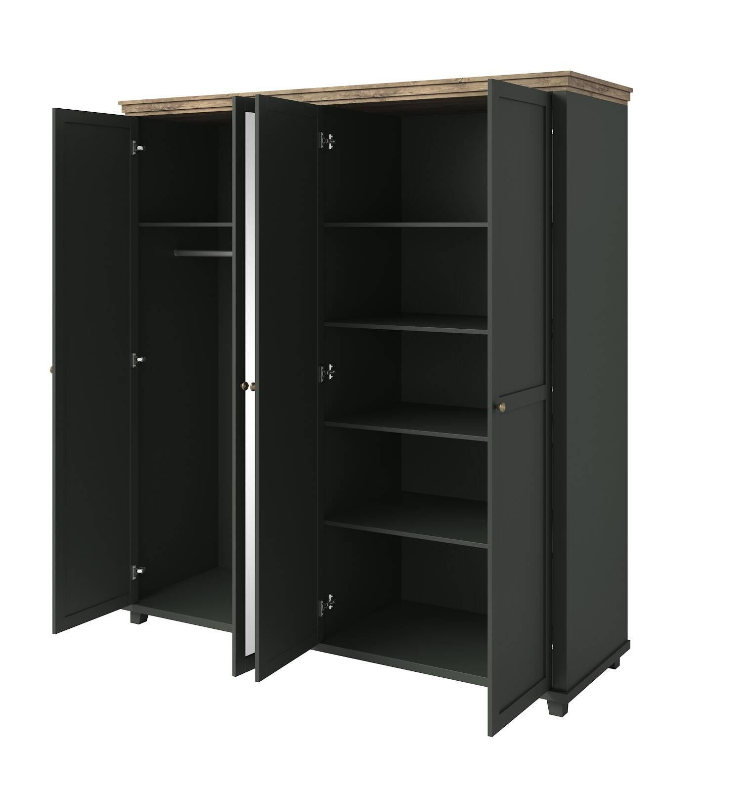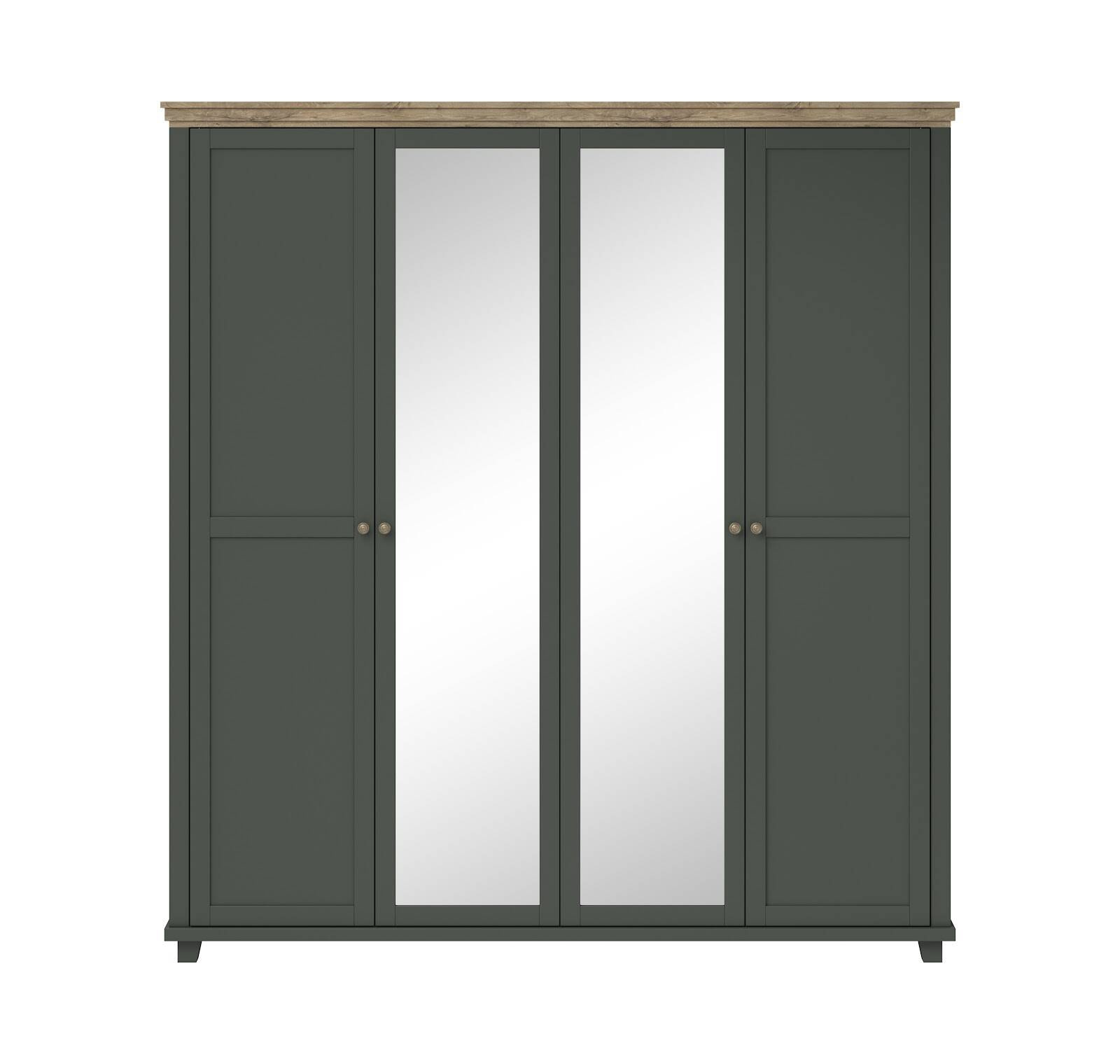 „Evora S“ 4 durų spinta su veidrodžiais, žalia / Lefkas ąžuolas