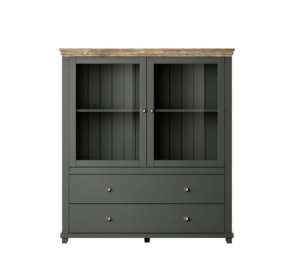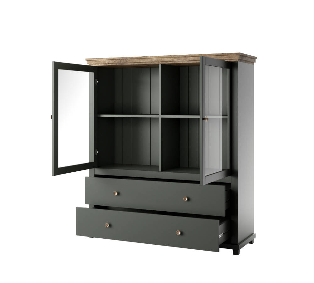 Evora WM aukšta komoda su stalčiais, 2 stalčiais, žalia / Lefkas ąžuolas