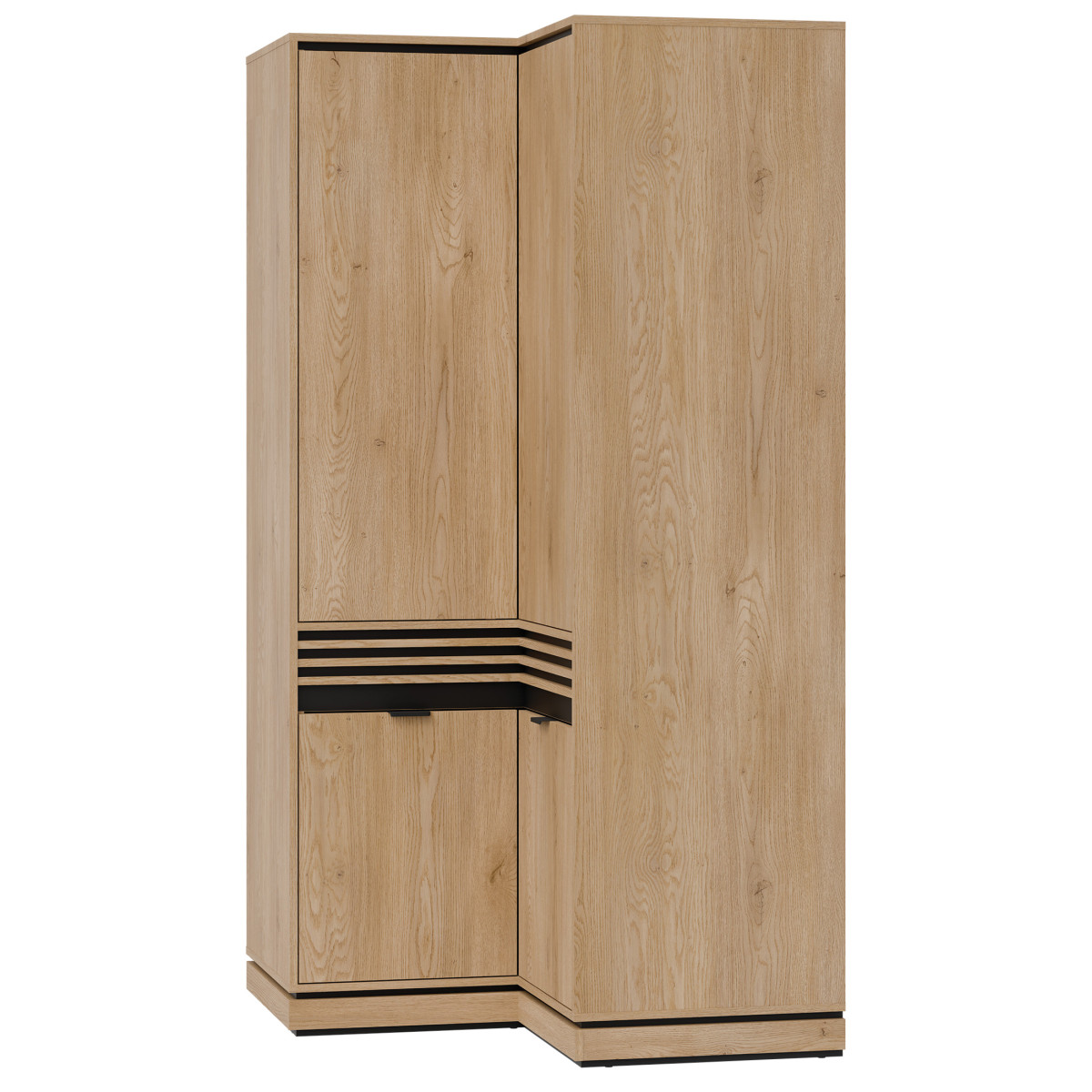 Kampinė spinta – puikus sprendimas norint optimaliai išnaudoti erdvę kambaryje. Ergonomiška jos forma puikiai telpa į kampą ir suteikia daug vietos daiktams susidėti. Erdvios lentynos ir pakaba leidžia lengvai susidėti drabužius ir aksesuarus. Tvirta konstrukcija užtikrina ilgaamžiškumą, o aukštos kokybės medžiagos – elegantišką išvaizdą. Dėl savo funkcionalumo ši spinta puikiai tiks miegamajame, persirengimo kambaryje ar koridoriuje, estetiškai ir efektyviai išnaudodama turimą erdvę.