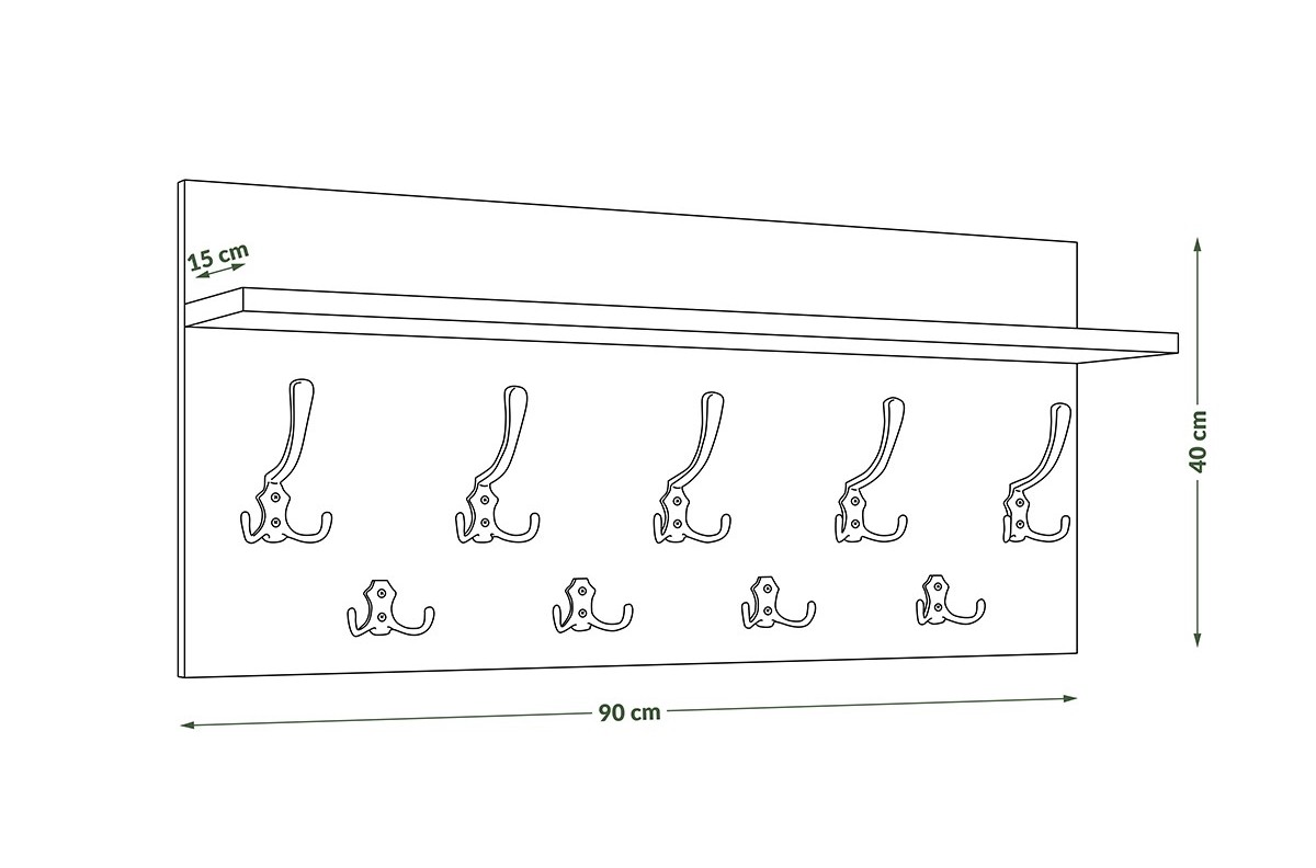 PLOTIS 90 arba 70 cm (priklausomai nuo pasirinkto dydžio), GYLIS 15 cm, AUKŠTIS 40 cm, MEDŽIAGOS Medžio drožlių plokštė, PAVIRŠIUS Matinis, STILIUS Modernus, SVORIS SU PAKUOTE 8 kg (90 cm) / 6,5 kg (70 cm)