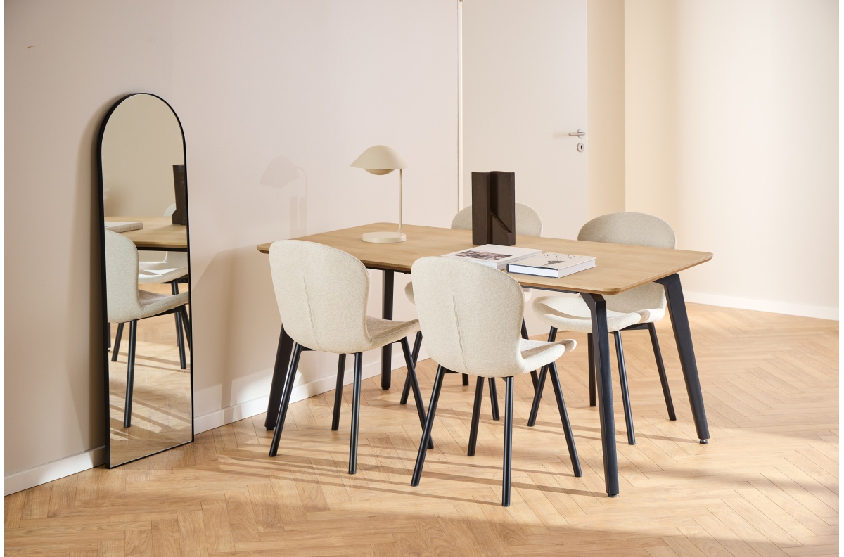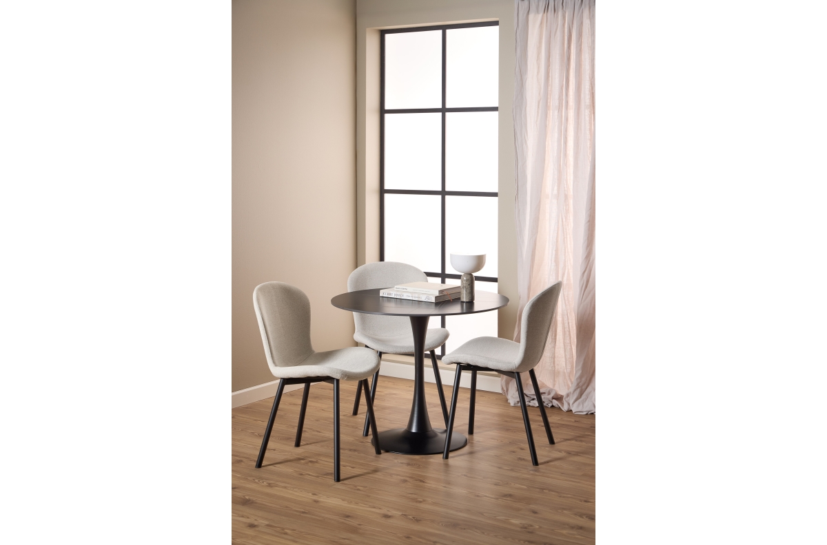 FIORA smėlio spalvos (Apia 453 audinys) / juodas rėmas – MODERNI ŠENILINIU APMUŠTA KĖDĖ SVETAINEI