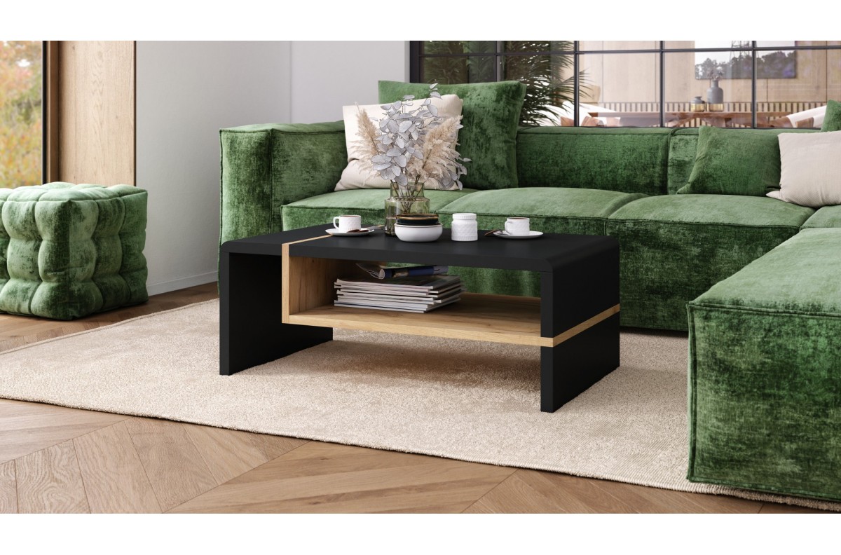 FOLK juodas/auksinis ąžuolas – MODERNUS kavos staliukas su lentyna