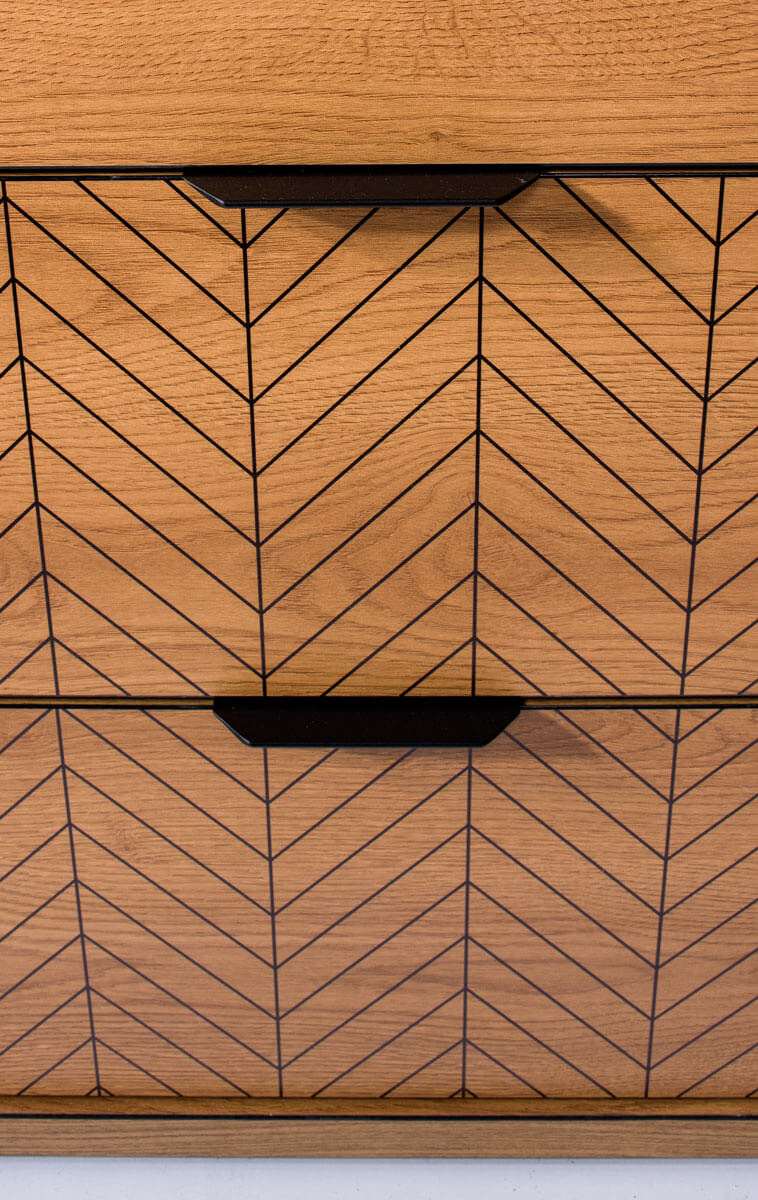 Karamelės spalvos ąžuolo spalvos komoda FONTI-3 suteikia namams šilumos ir jaukumo. Dėl modernios išvaizdos ji tampa ne tik funkcionaliu baldu, bet ir dekoratyviniu elementu, pabrėžiančiu kambario charakterį. Kiekviena detalė – nuo subtilių juodų rankenėlių iki harmoningo bendro dizaino – traukia dėmesį ir džiugina savo dizainu. Sukurta savarankiškai surinkti, komoda FONTI-3 leidžia lengvai pritaikyti ją prie savo gyvenimo būdo. Jos išmanus dizainas siūlo praktiškus sprendimus, o padalinus erdvę į spinteles ir stalčius, gausite puikią vietą tiek kasdieniams daiktams, tiek didesniems daiktams laikyti. Trys erdvūs stalčiai centrinėje dalyje padeda palaikyti tvarką, o lentynos šoninėse spintelėse leidžia efektyviai valdyti erdvę. Šešios darnios ir estetiškos metalinės rankenėlės ne tik pabrėžia modernų baldo stilių, bet ir suteikia patogų priėjimą prie vidaus. Komoda FONTI-3 yra ne tik baldas, bet ir sąjungininkė kovoje su chaosu, o dėl savo funkcionalumo ji idealiai tinka miegamajam, svetainei ar prieškambariui. Tylus durelių ir stalčių uždarymas yra papildomas privalumas, dėl kurio naudotis komoda malonu.
