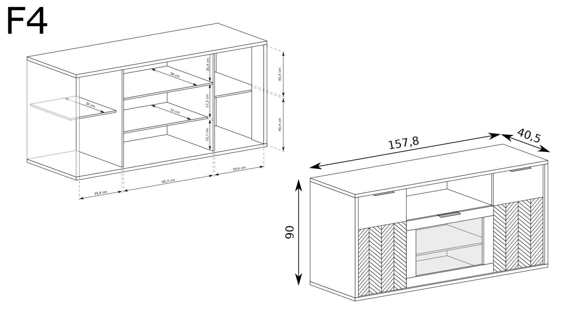 Atraskite erdvumą ir eleganciją savo interjere su FONTI-4 komoda, kurioje dera funkcionalumas ir modernus dizainas. Subtilus karamelinio ąžuolo atspalvis suteikia klasės bet kuriam kambariui, puikiai papildydamas įvairius interjero stilius. Ši komoda ne tik suteikia daug vietos daiktams susidėti, bet ir tampa estetiniu akcentu bet kurioje svetainėje ar miegamajame. Stiklinis fasadas komodos centre kviečia eksponuoti mėgstamiausius daiktus – nuo knygų iki dekoracijų. Tai suteikia jūsų daiktų laikymo vietai naują dimensiją, todėl ji tampa ne tik praktiška, bet ir labai stilinga. 158 cm pločio komoda puikiai tinka tiek didesnėse, tiek mažesnėse erdvėse, kartu užtikrindama daug erdvės. FONTI-4 komoda pasižymi ne tik gražaus dizaino, bet ir išmaniais daiktų laikymo sprendimais. Šonuose yra rakinamos spintelės su lentynomis, kurios padeda palaikyti tvarką ir organizuotumą. Nesvarbu, ar norite laikyti aksesuarus, ar susisteminti dokumentus, ši komoda suteikia galimybę viską laikyti savo vietose.