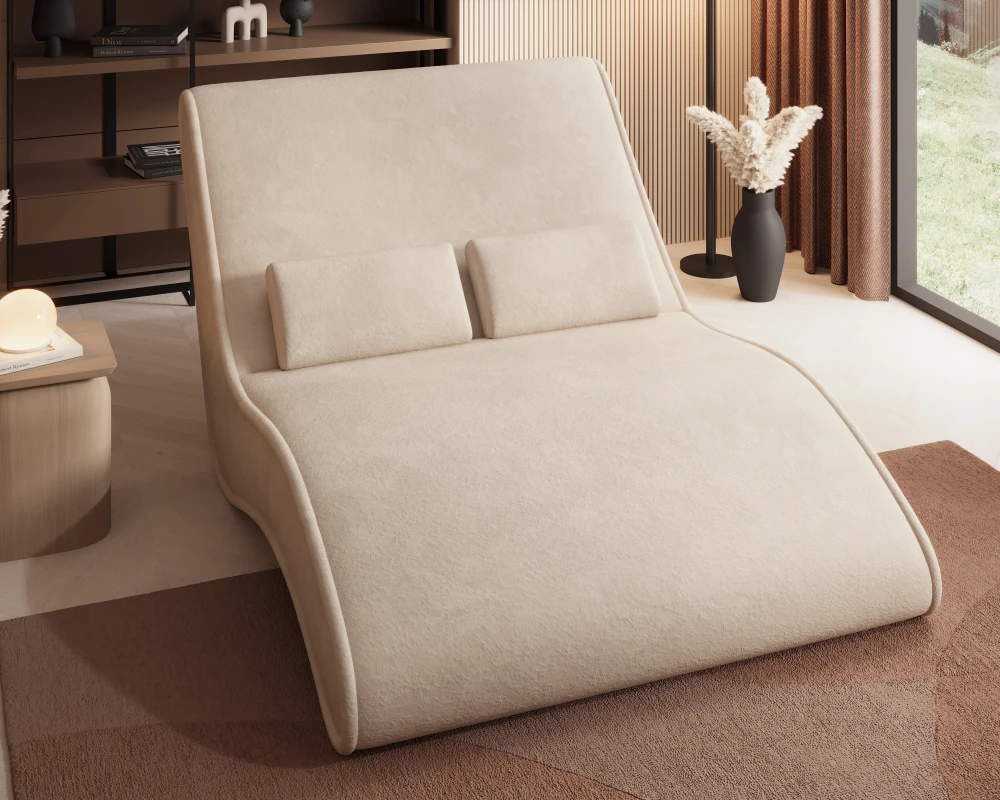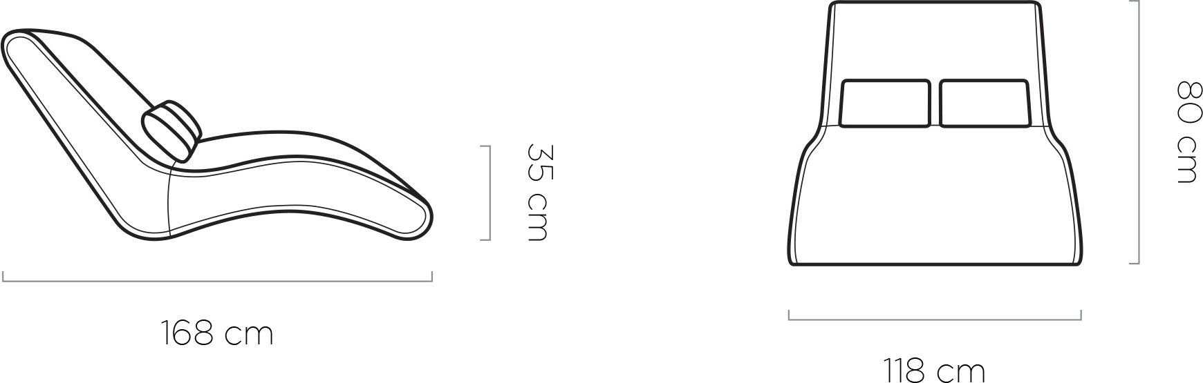 „Sato 120“ krėslas – tai dizainas, kuris pradžiugins kiekvieną komforto ir šiuolaikiško dizaino mėgėją. Unikalus jo siluetas traukia akį sklandžiomis, švelniai išlenktomis linijomis, sukuriančiomis harmoningą visumą. Krėslo plati sėdynė – įspūdingo 120 cm pločio ir 168 cm gylio, todėl jis idealiai tinka poilsiui vienam arba dviese. Krėslo aukštis yra 35 cm, todėl jame patogu sėdėti, o žemas profilis suteikia jam modernumo ir puikiai tinka įvairios paskirties erdvėse. Papildomas privalumas – galvos atrama ir dvi mažos pagalvėlės, leidžiančios krėslą pritaikyti pagal savo poreikius.