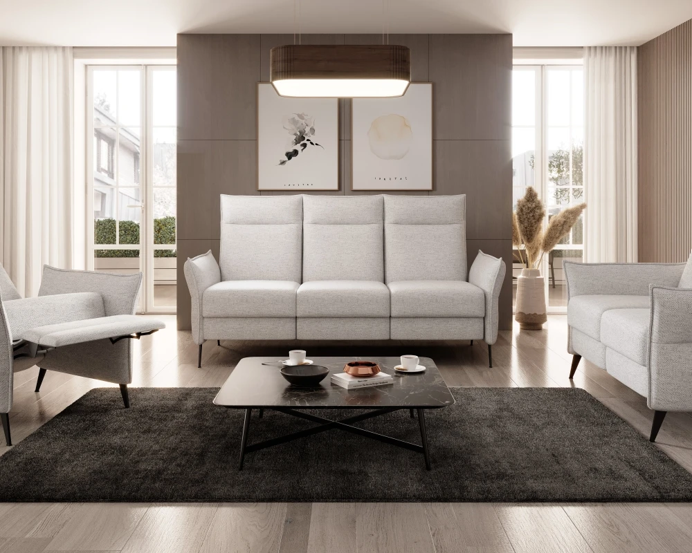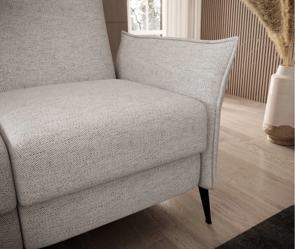 „Xavi 1“ fotelis – modernus ir stilingas pasirinkimas, skirtas kasdieniam poilsiui ir funkcionalumui. Jo plotis – 79 cm, aukštis – 105 cm, o gylis – reguliuojamas nuo 88 iki 158 cm. Sėdynė yra 50 cm aukščio ir užpildyta vingiuotomis spyruoklėmis, o atlošas paminkštintas poliuretano putomis, užtikrinančiomis patogią atramą ir komfortą naudojimo metu. Visas baldas stovi ant juodų metalinių kojelių. Šis modelis turi atsipalaidavimo funkciją su reguliuojamu atlošu ir porankiu, leidžiančiu individualiai reguliuoti padėtį. Be to, fotelis turi rankinio atlošo reguliavimo funkciją. „Xavi 3“ fotelį su visiškai apmuštu atlošu galima pastatyti prie sienos arba kambario centre. Tai elegantiškas, tačiau funkcionalus dizainas, puikiai tiksiantis modernioje svetainėje ir užtikrinantis kasdienį komfortą. Taip pat galima įsigyti versiją su reguliuojamu atlošu.