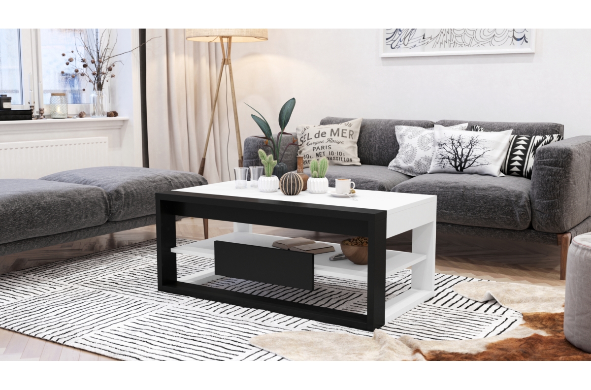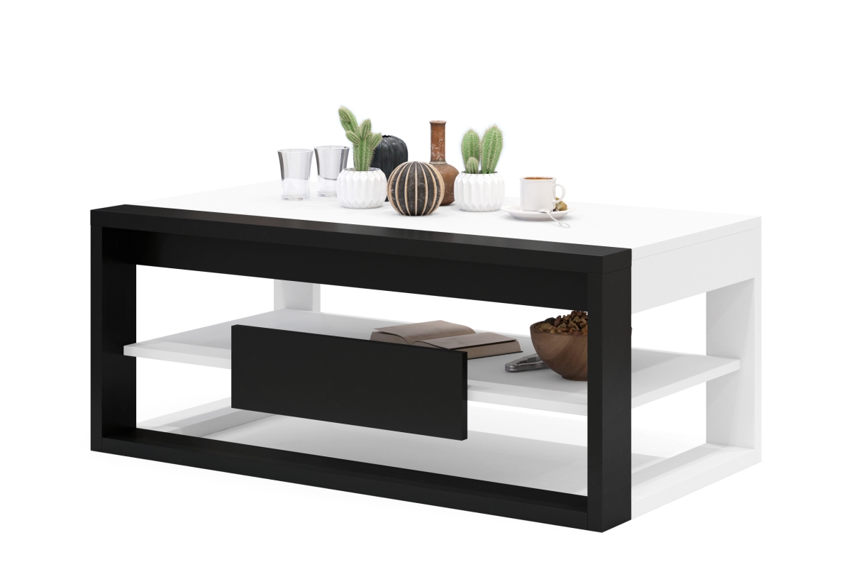 Kavos staliukas pagamintas iš aukštos kokybės, matinės medžio drožlių plokštės, laminuotos iš abiejų pusių, 28 ir 18 mm storio, apdailintos 1 mm ABS briaunomis.
