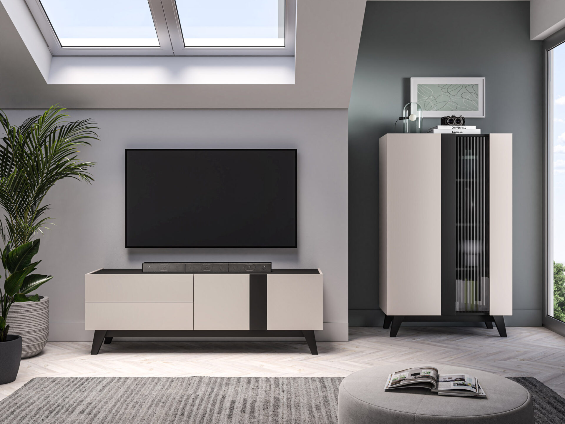 „Freshion 05“ televizoriaus staliukas – puikus baldas jūsų televizoriui. Erdvi niša su dvigubomis durelėmis ir dviem dideliais stalčiais suteikia vietos daiktams susidėti. Jame galėsite susitvarkyti savo multimedijos įrangą ir palaikyti tvarką svetainėje. Platus stalviršis puikiai tinka televizoriui ir (arba) vazoms, knygoms ar kelionių suvenyrams.